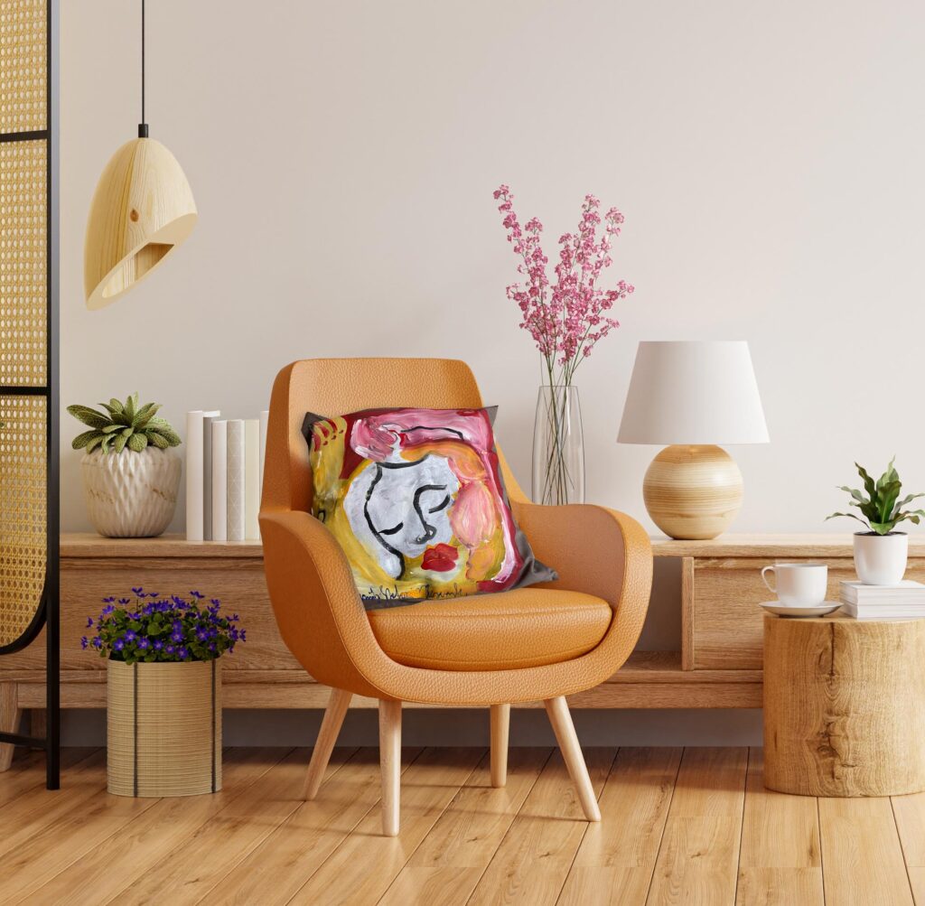 Artistic pillowcase by Kamila Stefania Tkaczyk. Cotton, acrylic, 50 x 50 cm.