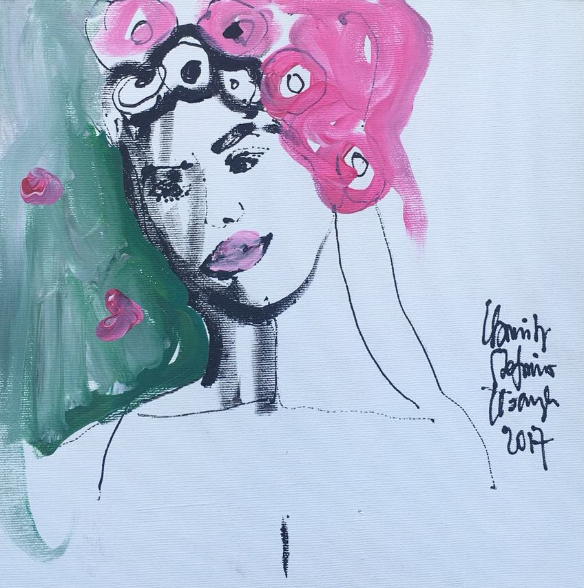 ‚Flowers in hair’, acrylic, 30 x 30, Kamila Stefania Tkaczyk 2017