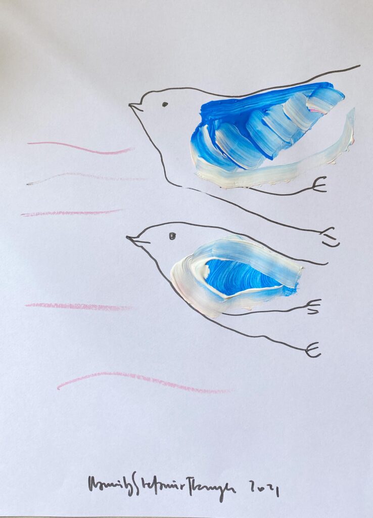 ‚Flying dolphins’, ink, 20 x 30, Kamila Stefania Tkaczyk 2021