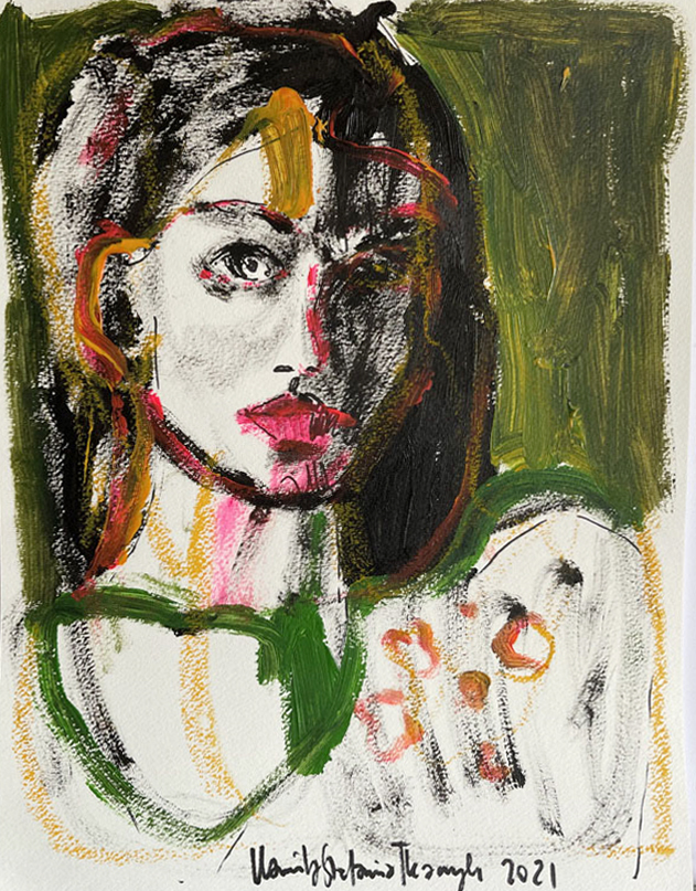 ‚Portrait on a green background’, acrylic, 20 x 30, Kamila Stefania Tkaczyk 2021