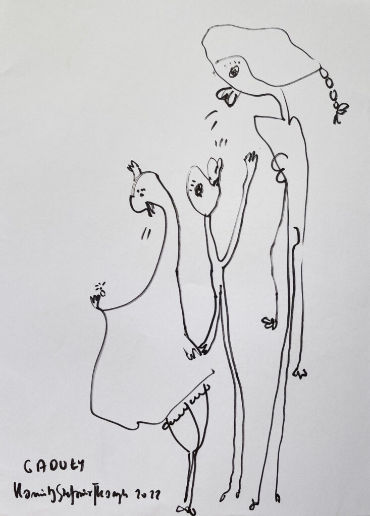 ‚Talkers’, ink, 30 x 40 cm, Kamila Stefania Tkaczyk.