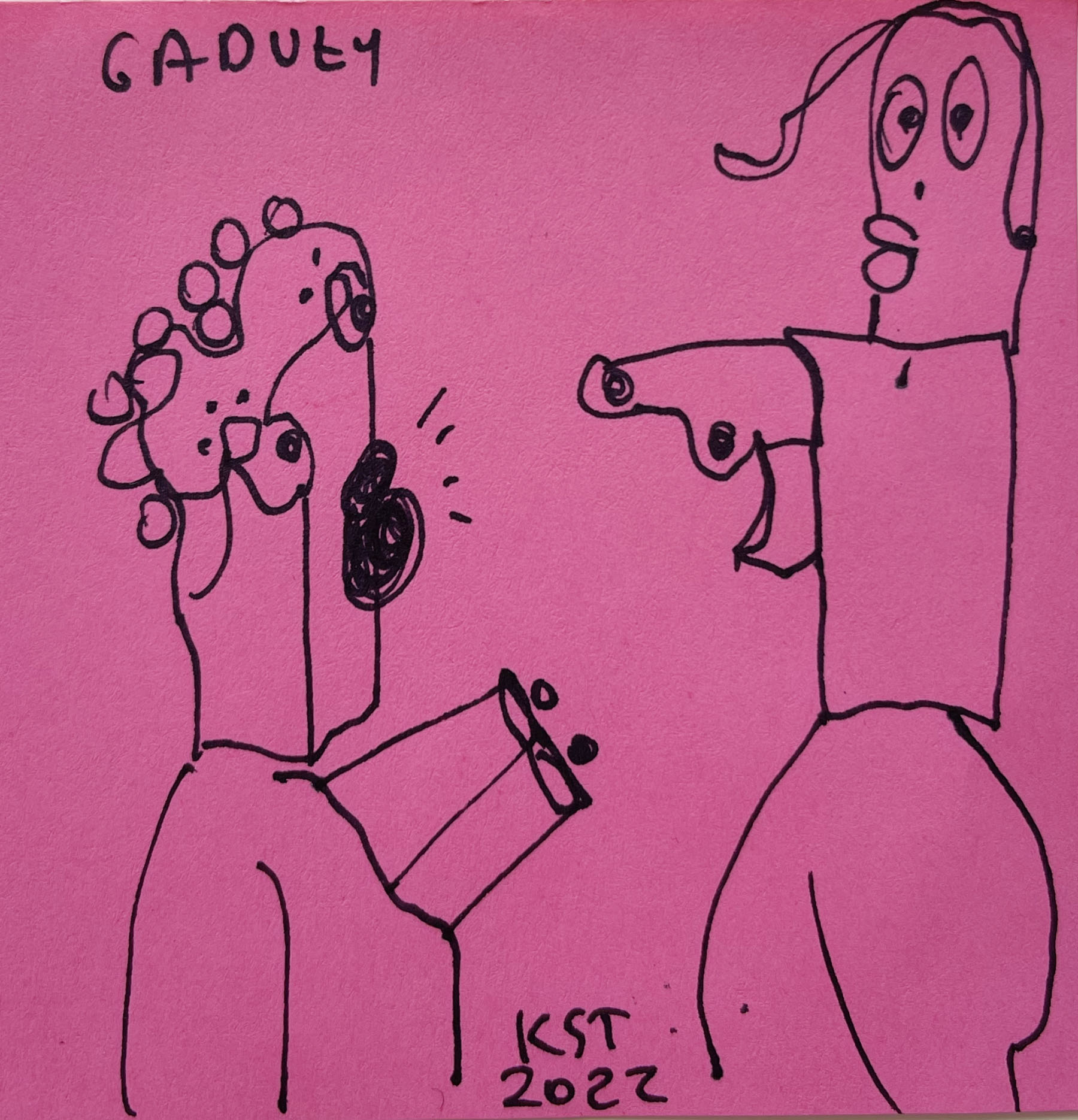 ‚Talkers’, ink, 8 x 8 cm, Kamila Stefania Tkaczyk.