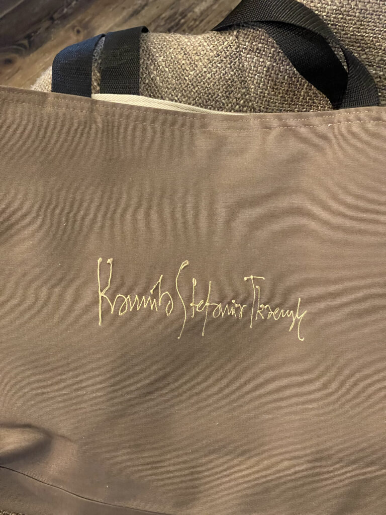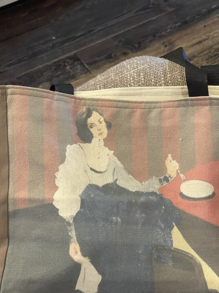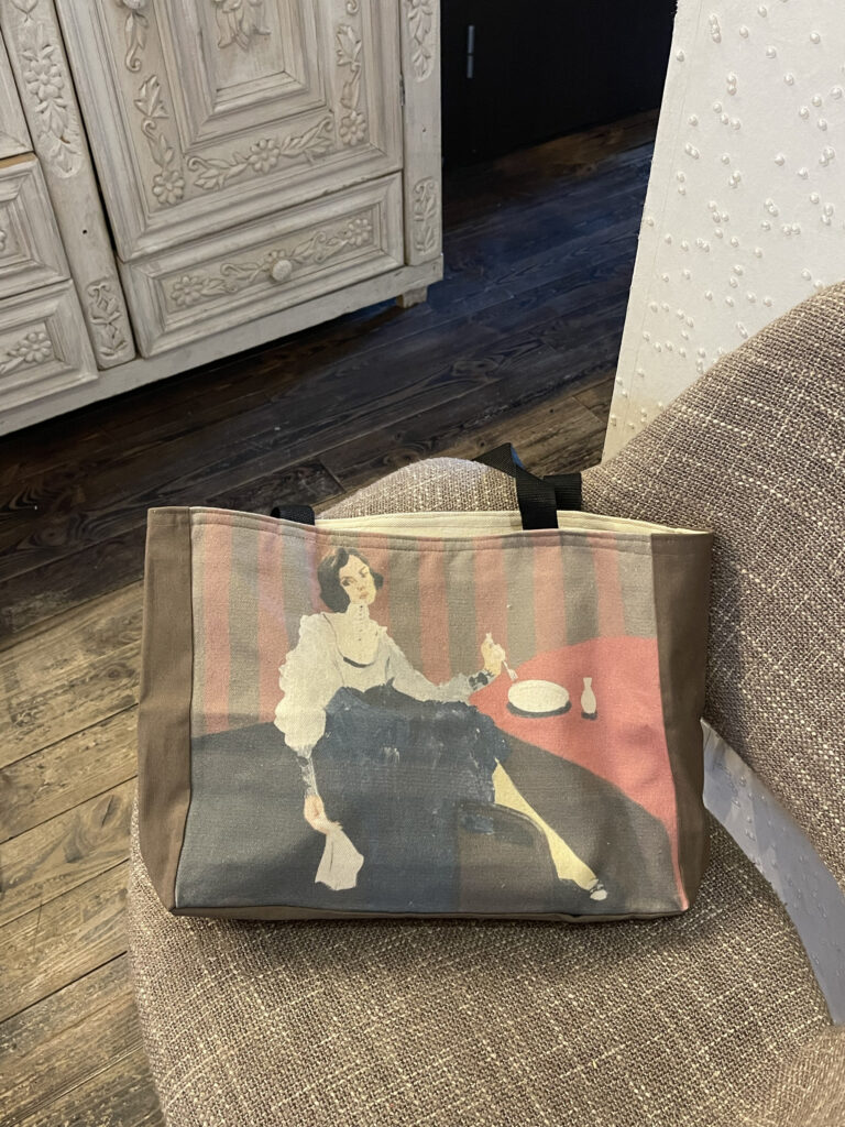 Artystyczna torba, 100 % bawełna, by Kamila Stefania Tkaczyk. Unikatowa, jak dzieła, które są naniesione w formie pracochłonnego wydruku. Limited edition, hand made. Tył to cappuccino.
