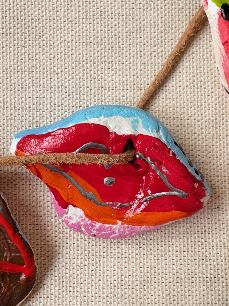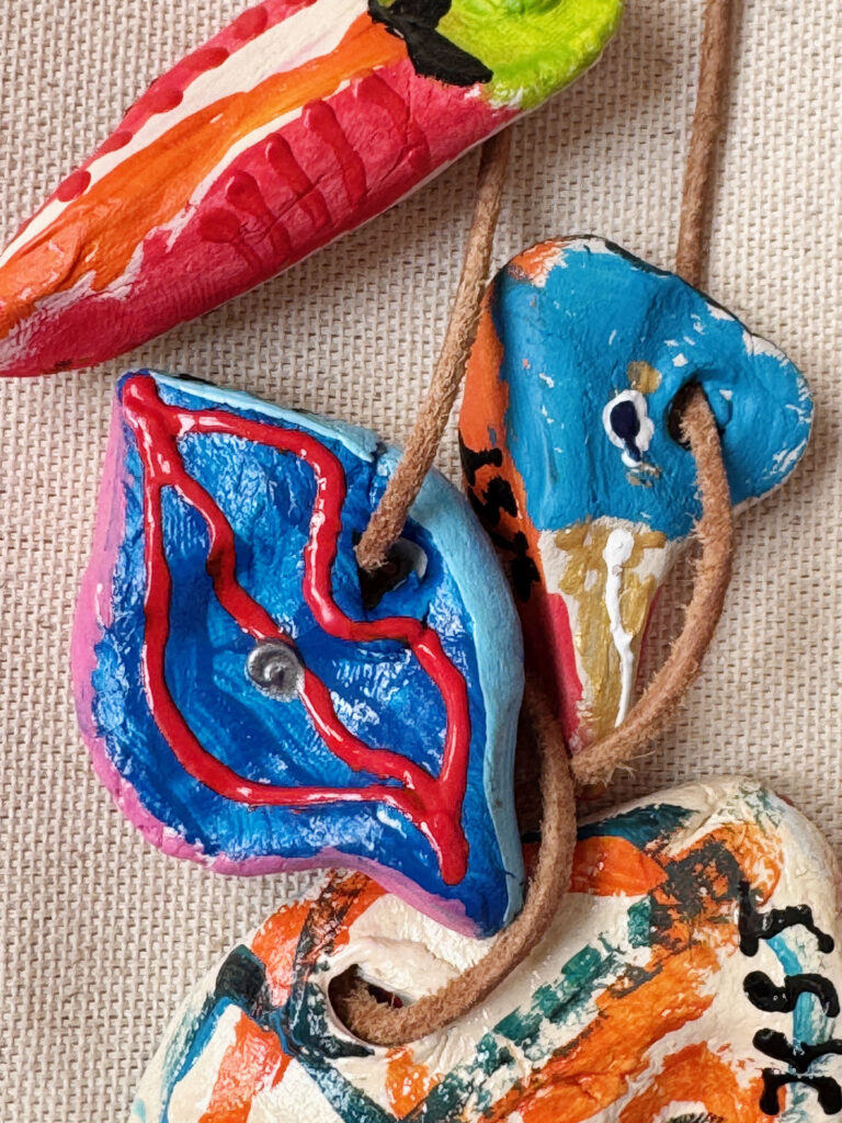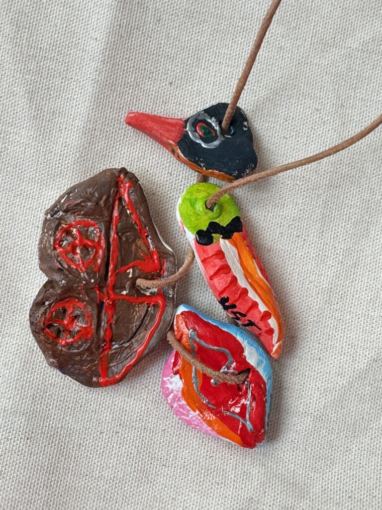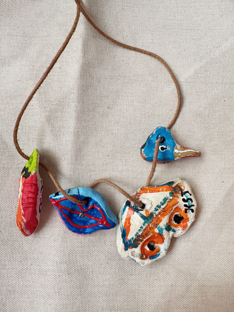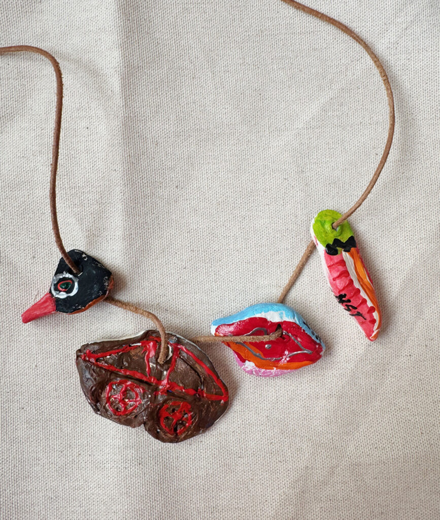 Intricately crafted artistic necklace made of clay. Can be worn in various configurations or individually. All on a leather strap. Art & design by Kamila Stefania Tkaczyk. Sales and contact via: kamila.tkaczyk.art@gmail.com
