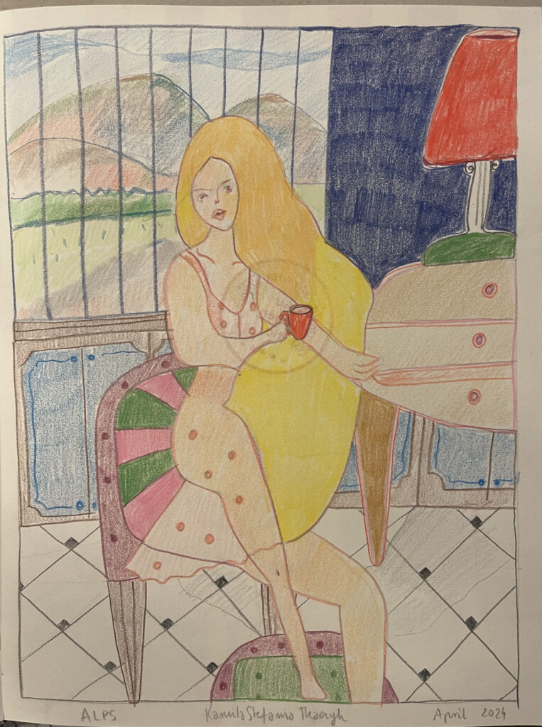 ‚Alps’, crayons, A3, Kamila Stefania Tkaczyk 2024.