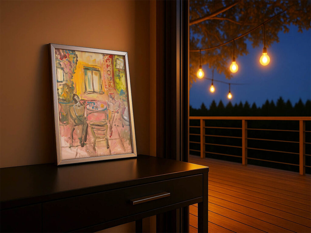 ‚Amour restaurant Côte d’Azur’, acrylic, 50 x 40 cm, Kamila Stefania Tkaczyk 2025.