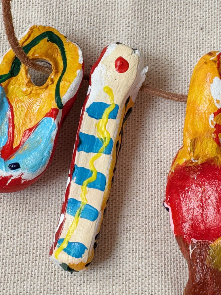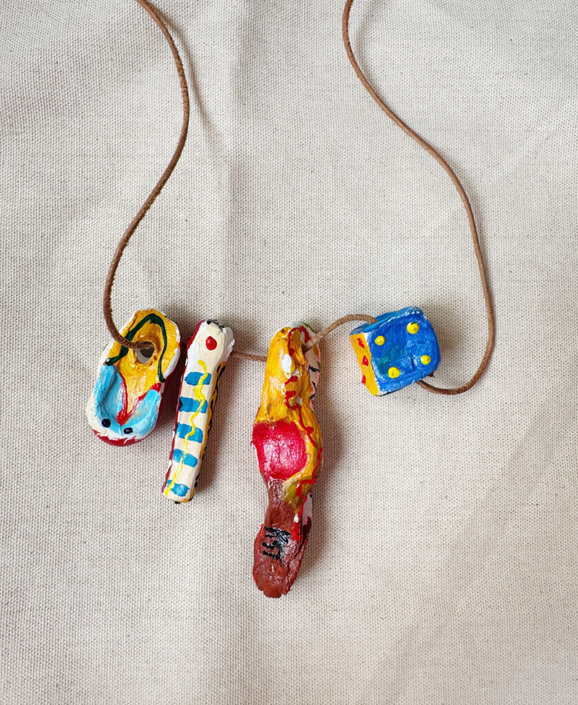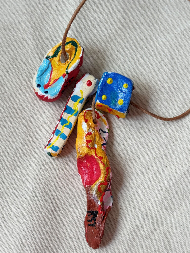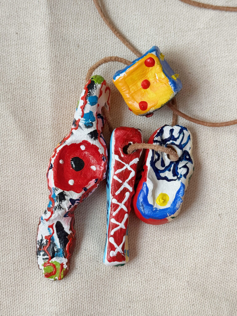 Intricately crafted artistic necklace made of clay. Can be worn in various configurations or individually. All on a leather strap. Art & design by Kamila Stefania Tkaczyk. Sales and contact via: kamila.tkaczyk.art@gmail.com