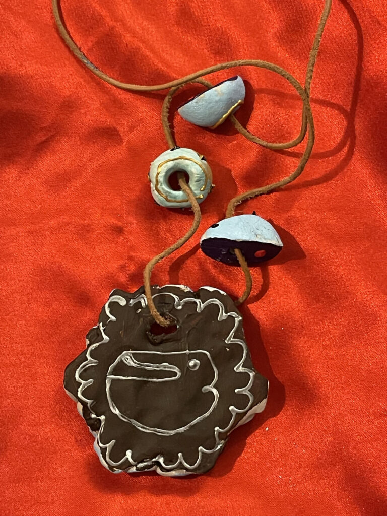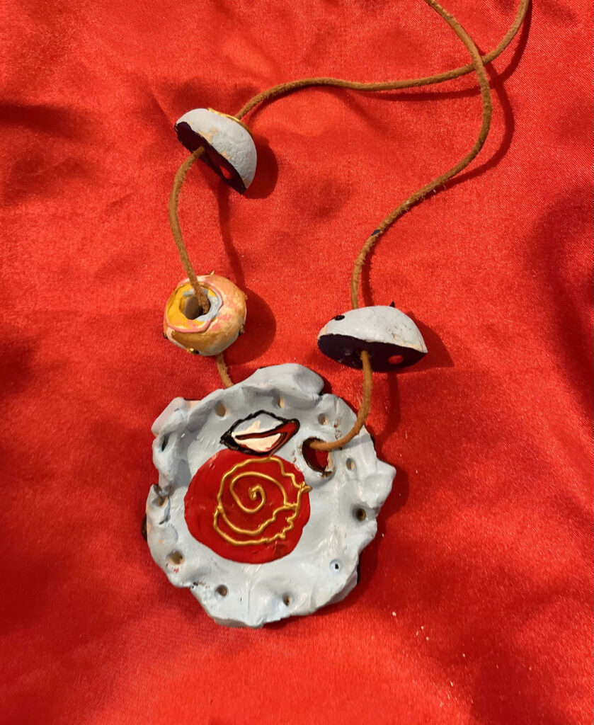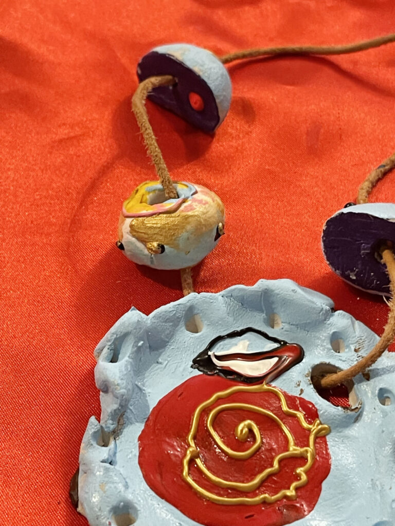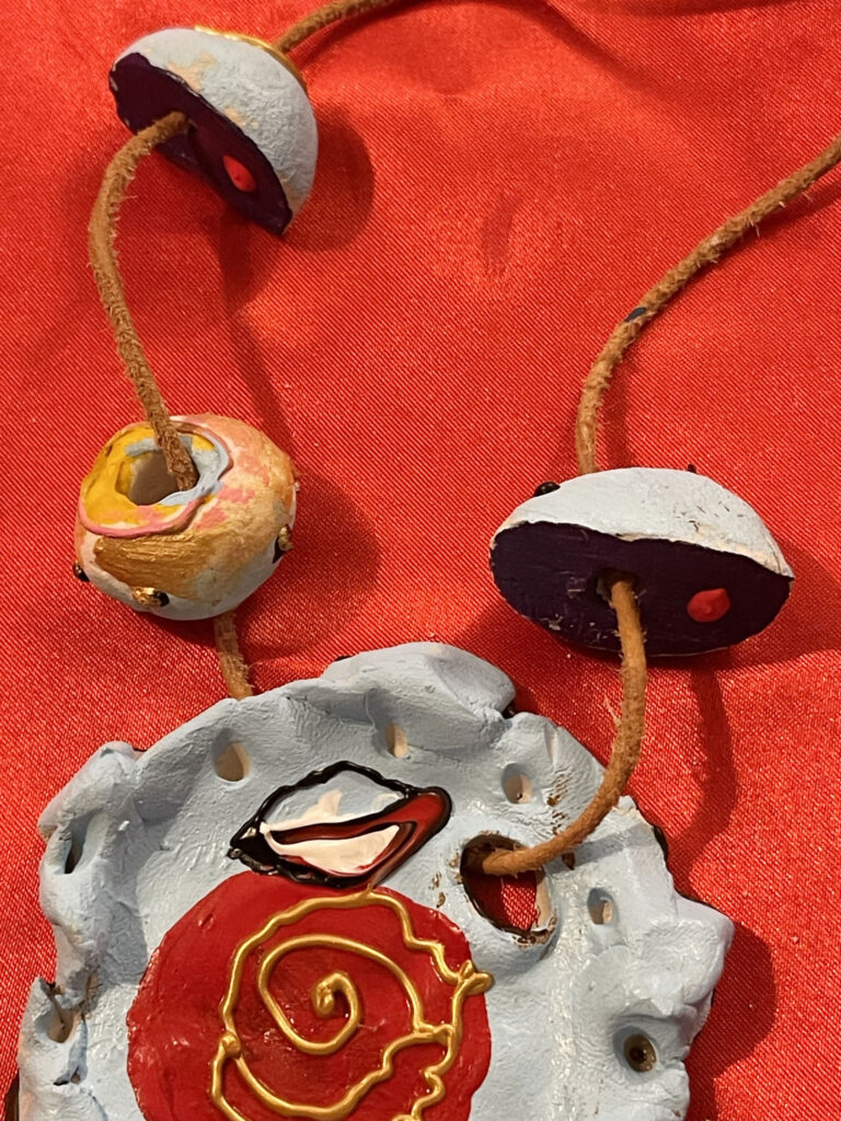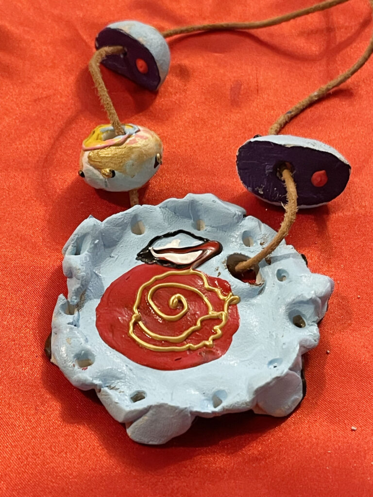 ‚Baby blue and rose’, necklace by Kamila Stefania Tkaczyk; clay & acrylic.