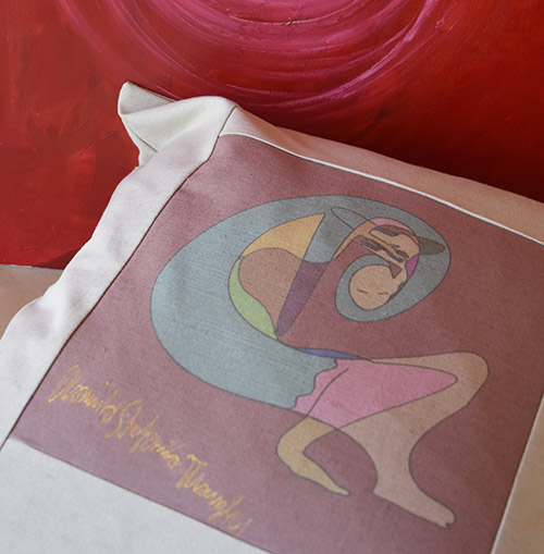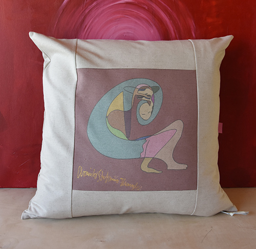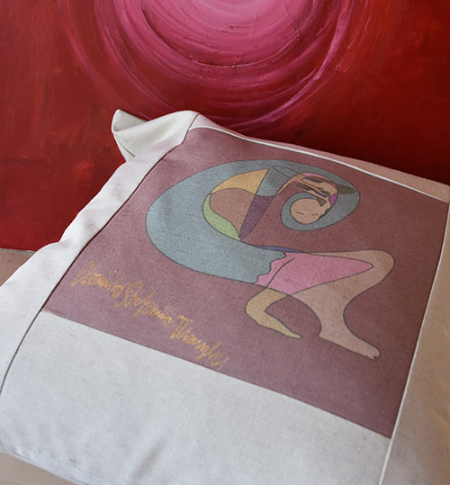 Artystyczna poszewka na poduszkę z obrazem Kamili Stefanii Tkaczyk. Bajkowa seria. Surowa bawełna, 50 x 50 cm.