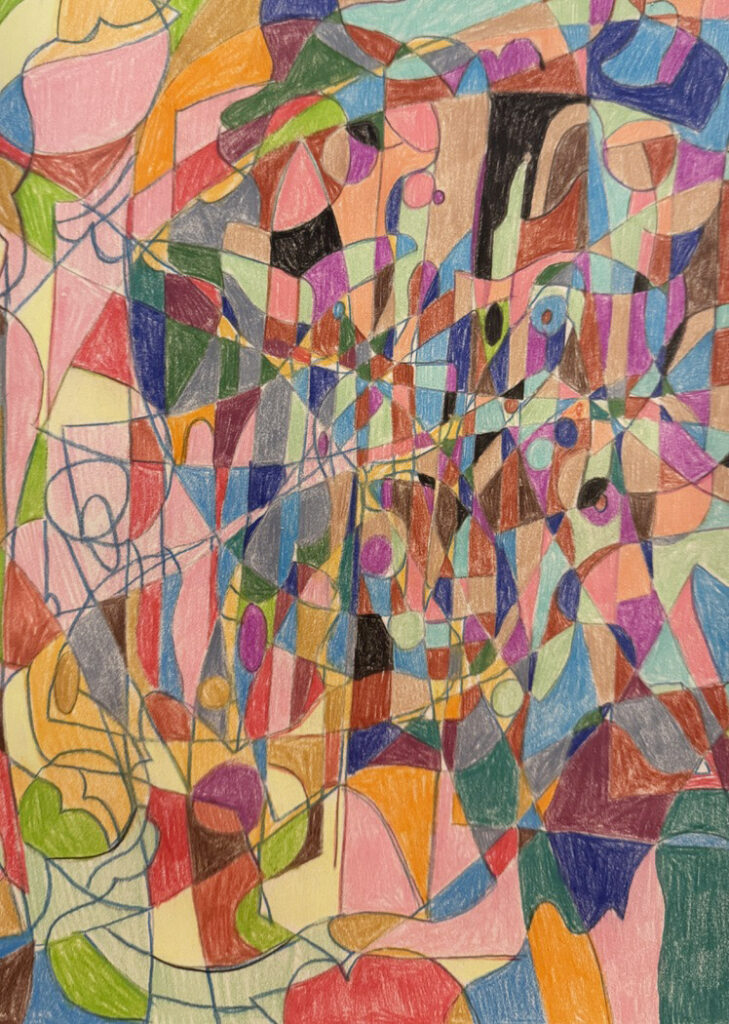 ‚Body’, crayons, 27,5 x 26,5 cm, Kamila Stefania Tkaczyk 2025.