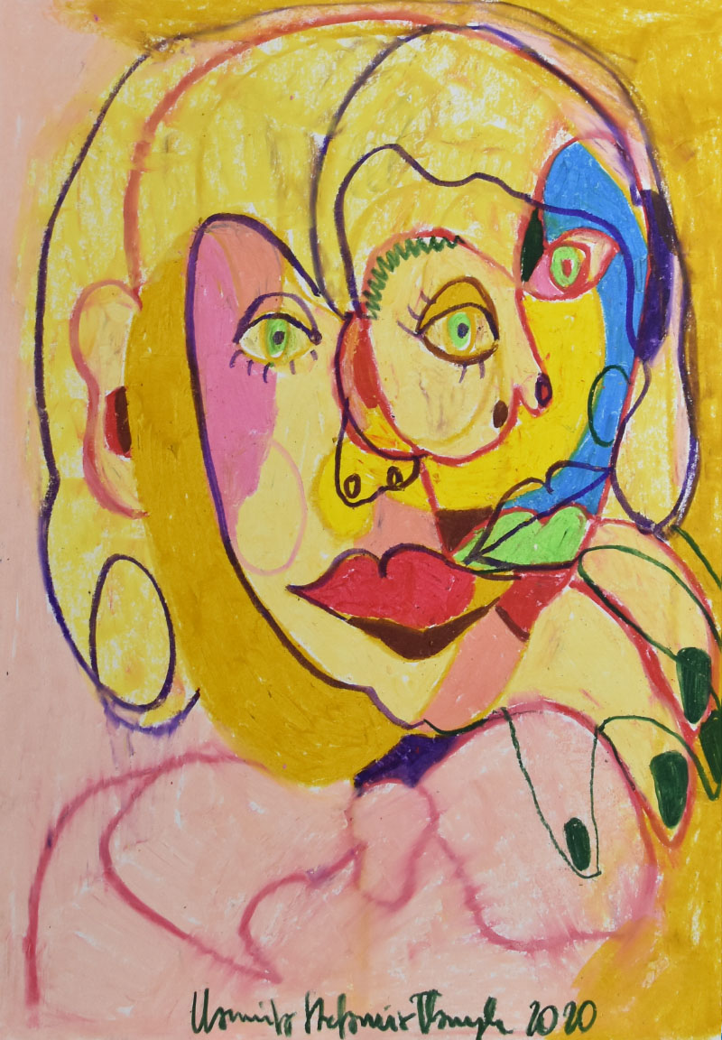 ‚More eayes’, oil pastels, 40 x 30 cm, Kamila Stefania Tkaczyk 2020.