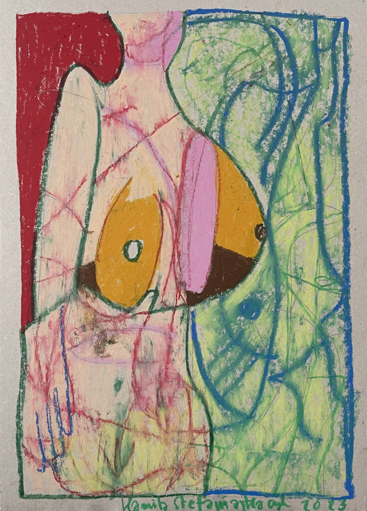 ‚February act’, oil pastel, 50 x 35 cm, Kamila Stefania Tkaczyk 2023.