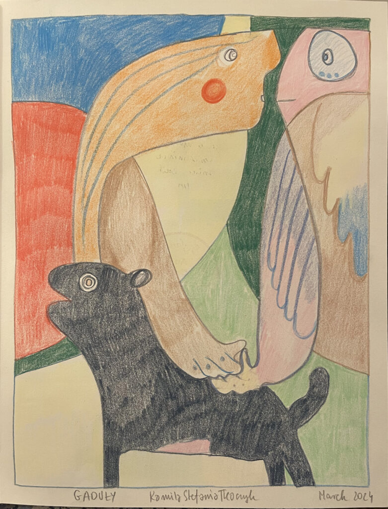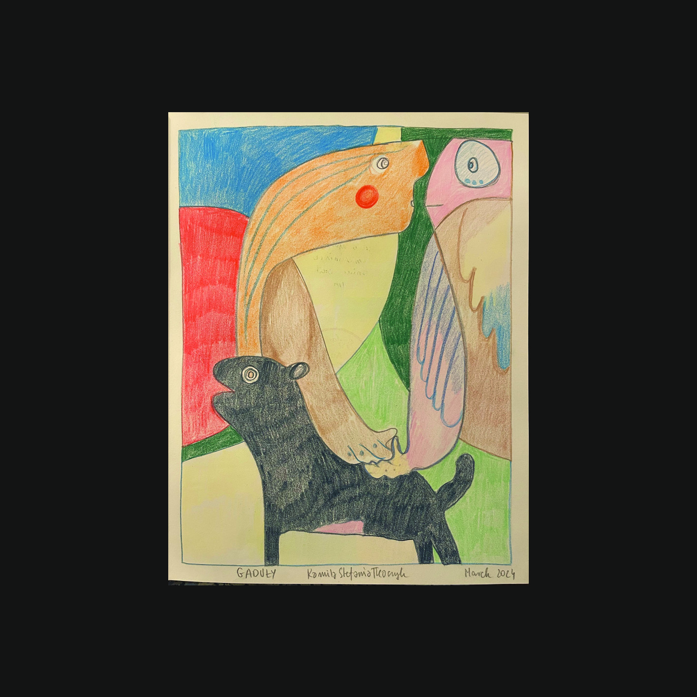 ‚Gaduły’, crayons, A3, Kamila Stefania Tkaczyk 2024.