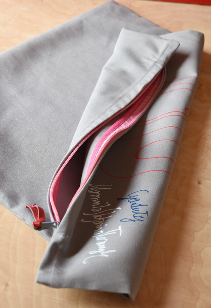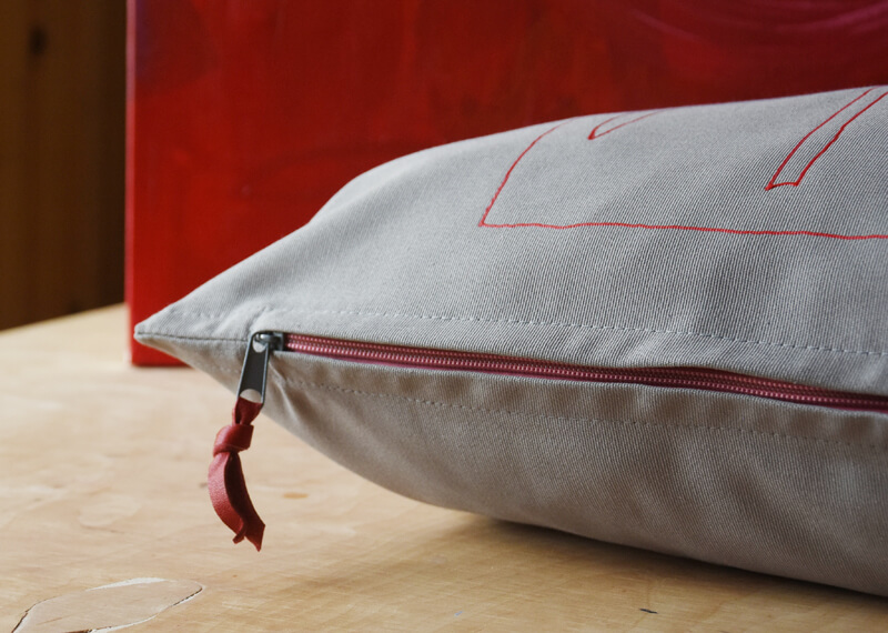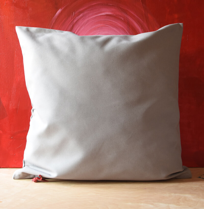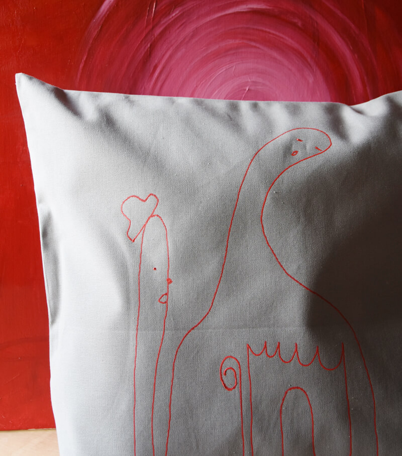 Poszewka na poduszkę z obrazem namalowanym przez Kamilę Stefanię Tkaczyk. Bawełna 100%, szarość, wymiary 49 x 50 cm.