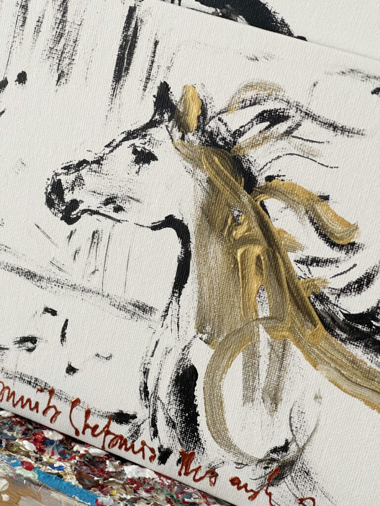 ‚Golden horse’, ink & acrylic, 18 x 24 cm, Kamila Stefania Tkaczyk 2022.