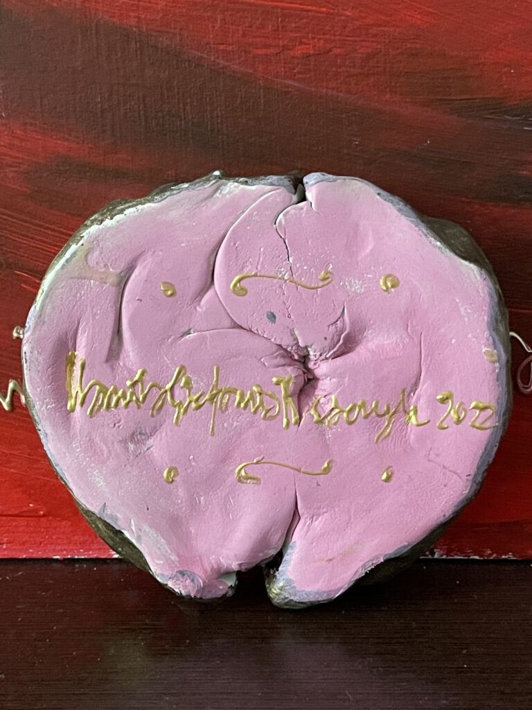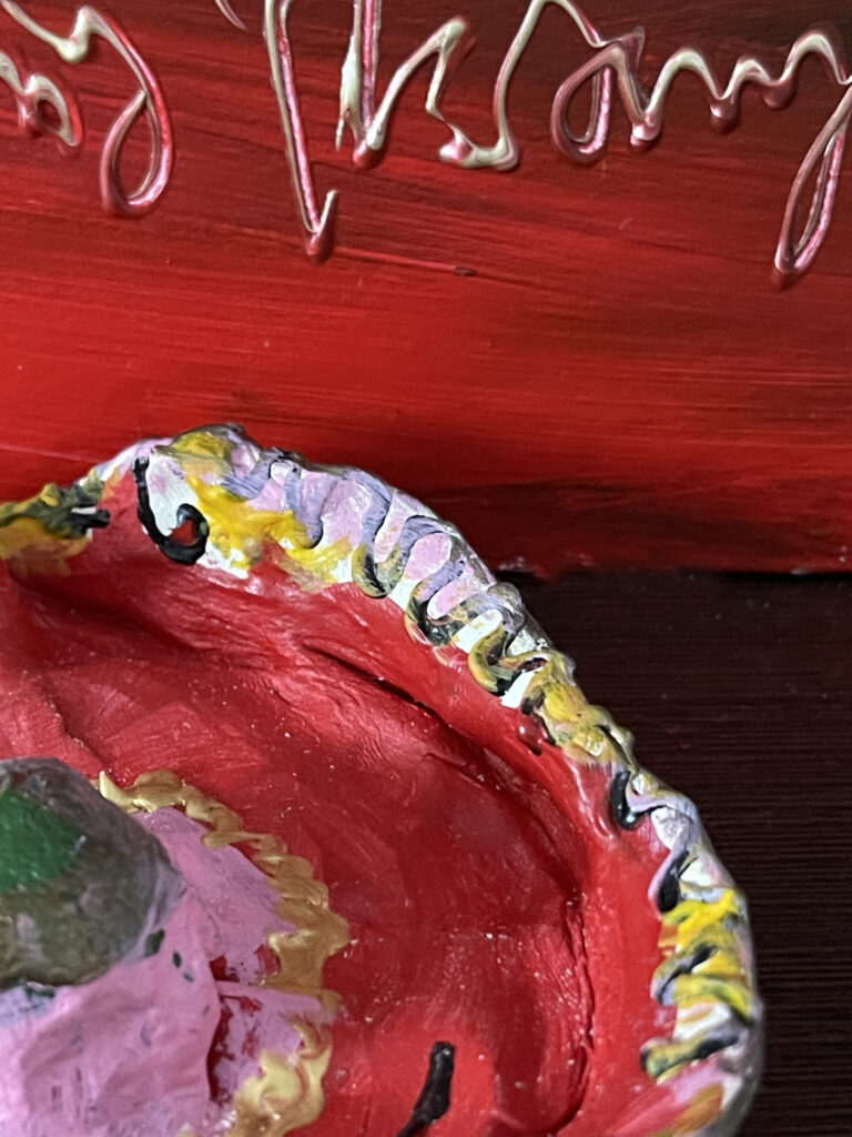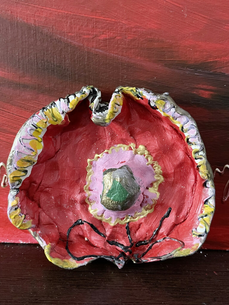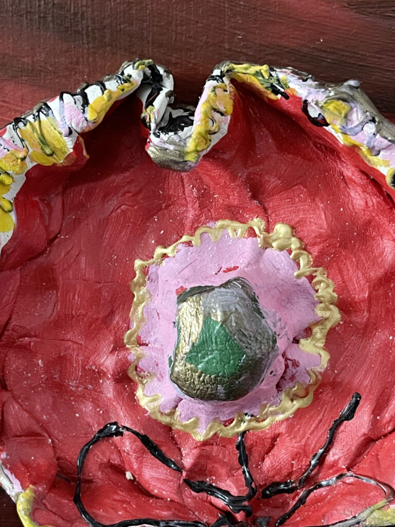 ‚Green button’, bowl by Kamila Stefania Tkaczyk; clay & acrylic, 13 cm.