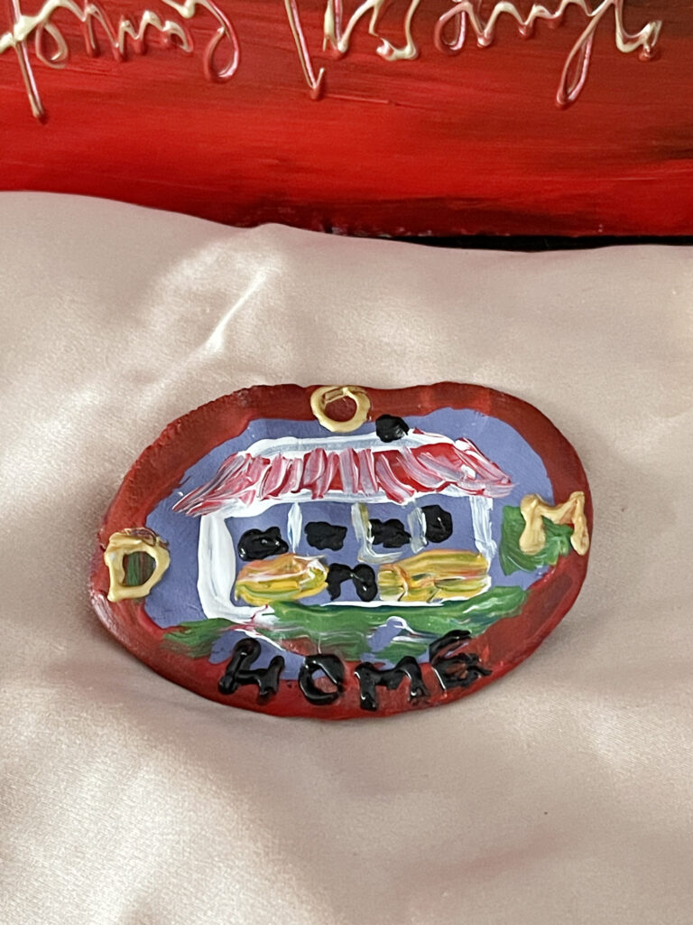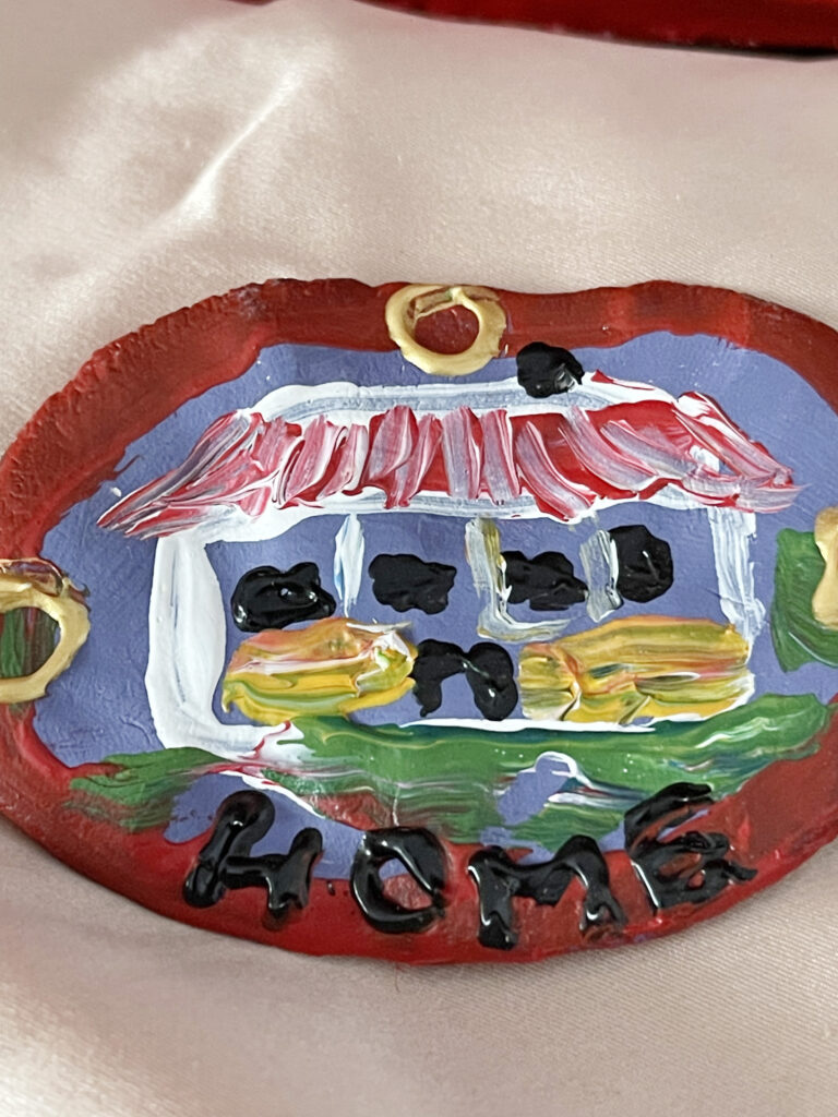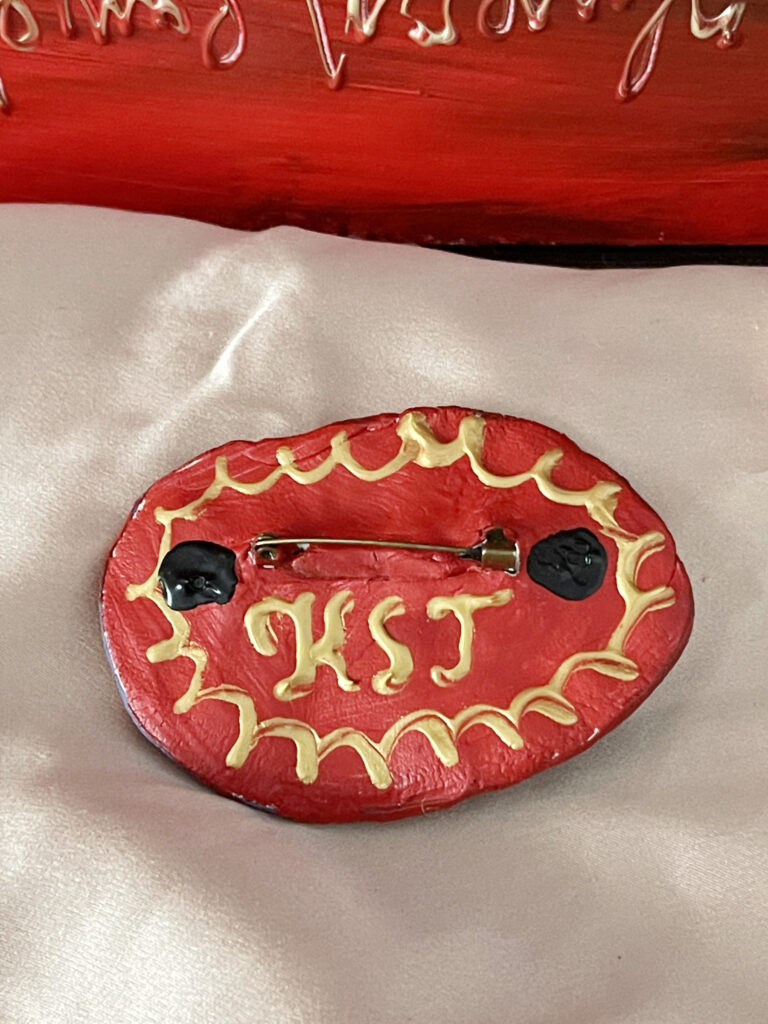 ‚Home’, brooch. Clay, acrylic, diameter 7 cm. Kamila Stefania Tkaczyk 2022