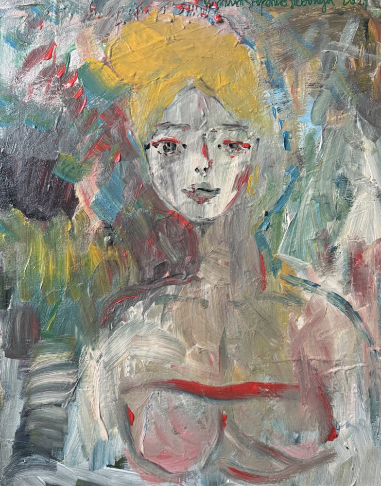 ‚In the morning in the mirror’, acrylic, 50 x 60 cm, Kamila Stefania Tkaczyk 2024.
