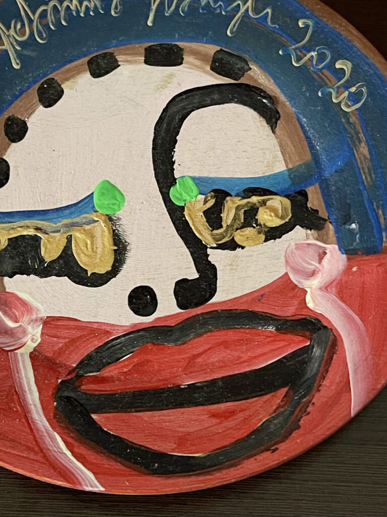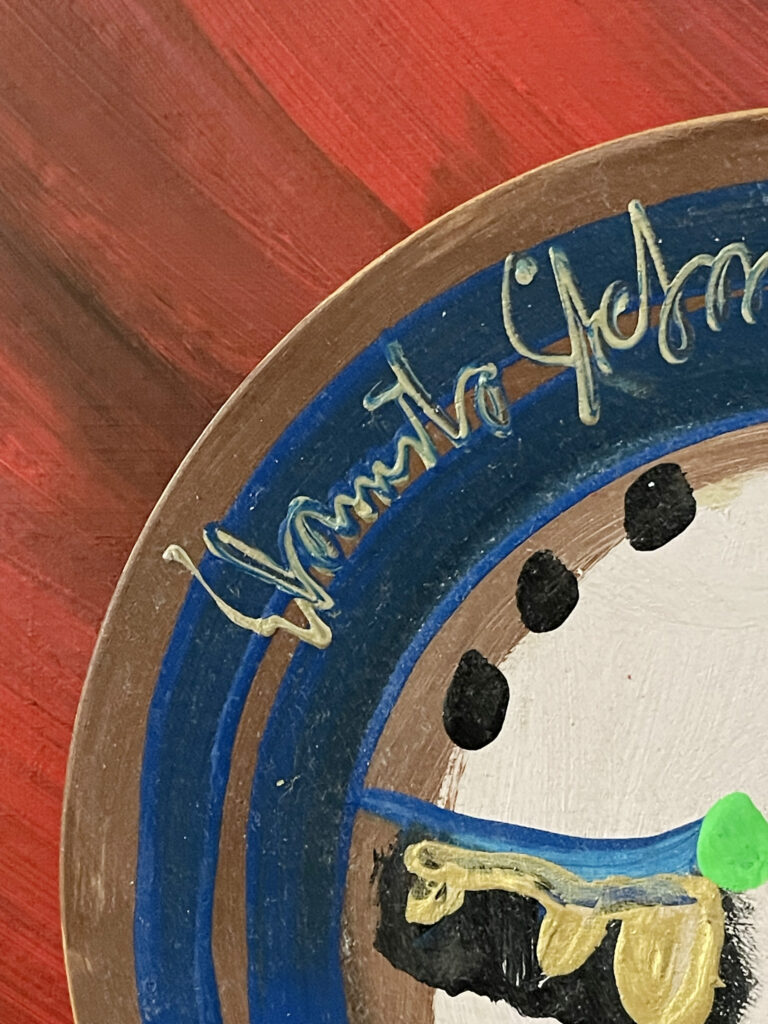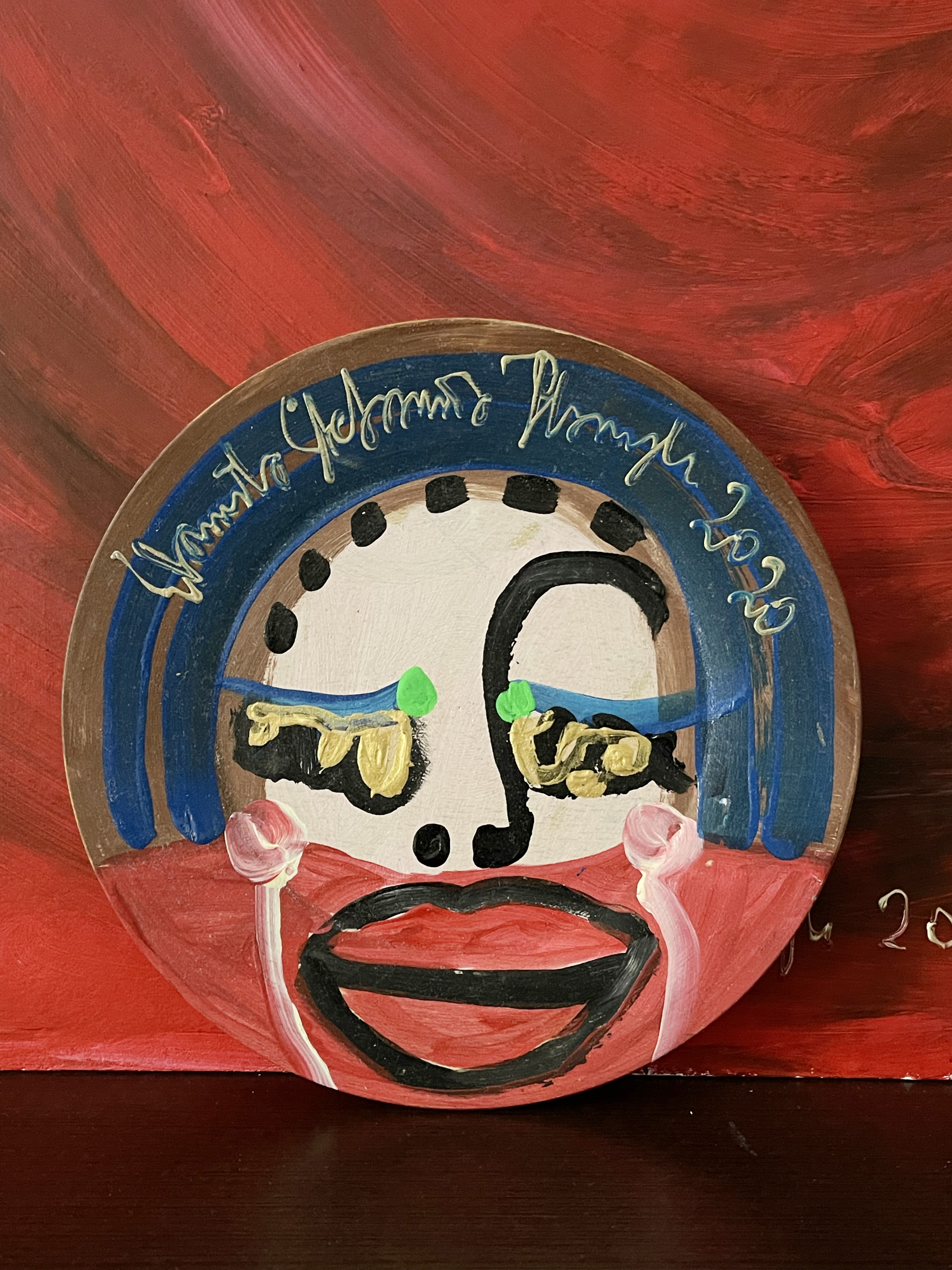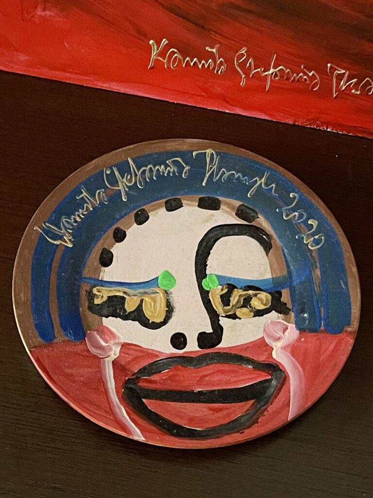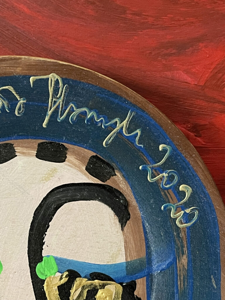 Plate painting by Kamila Stefania Tkaczyk. Wood, acrylic, diameter 22 cm.