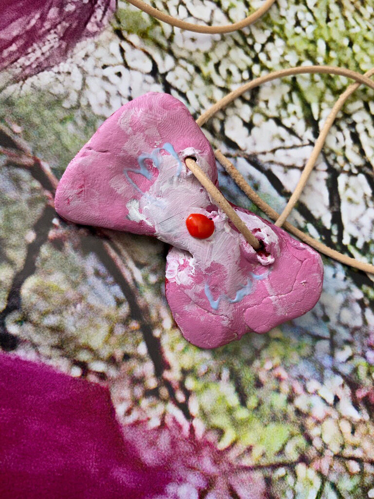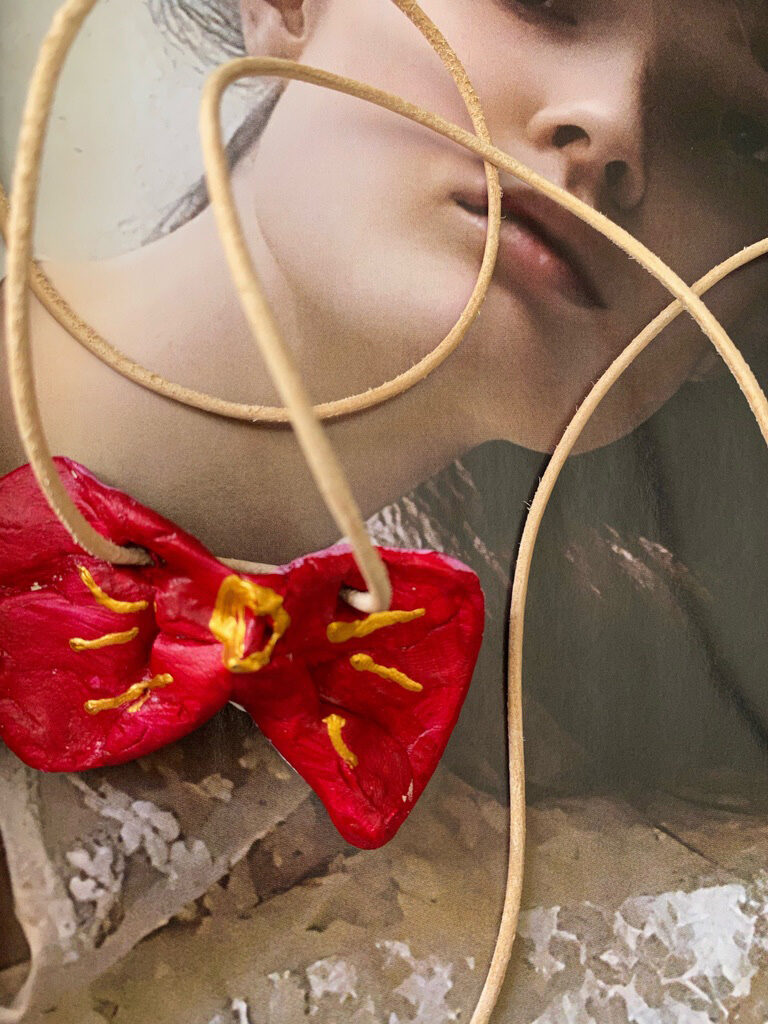 Naszyjnik na rzemieniu by Kamila Stefania Tkaczyk, glina, akryl. Unikat.
