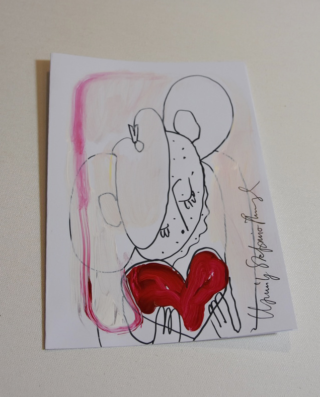 Ręcznie malowana kartka okolicznościowa autorstwa Kamili Stefanii Tkaczyk. Wymiary 20,5 x 14,5 cm.