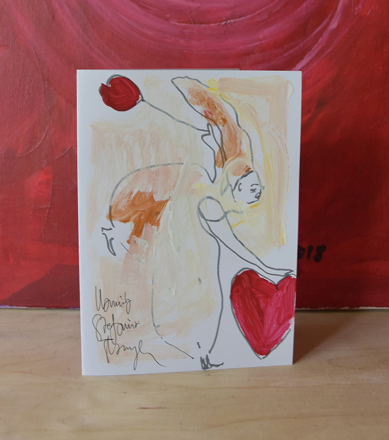 Ręcznie malowana kartka okolicznościowa autorstwa Kamili Stefanii Tkaczyk. Wymiary 20,5 x 14,5 cm.