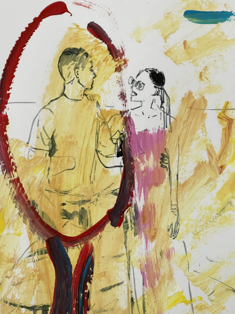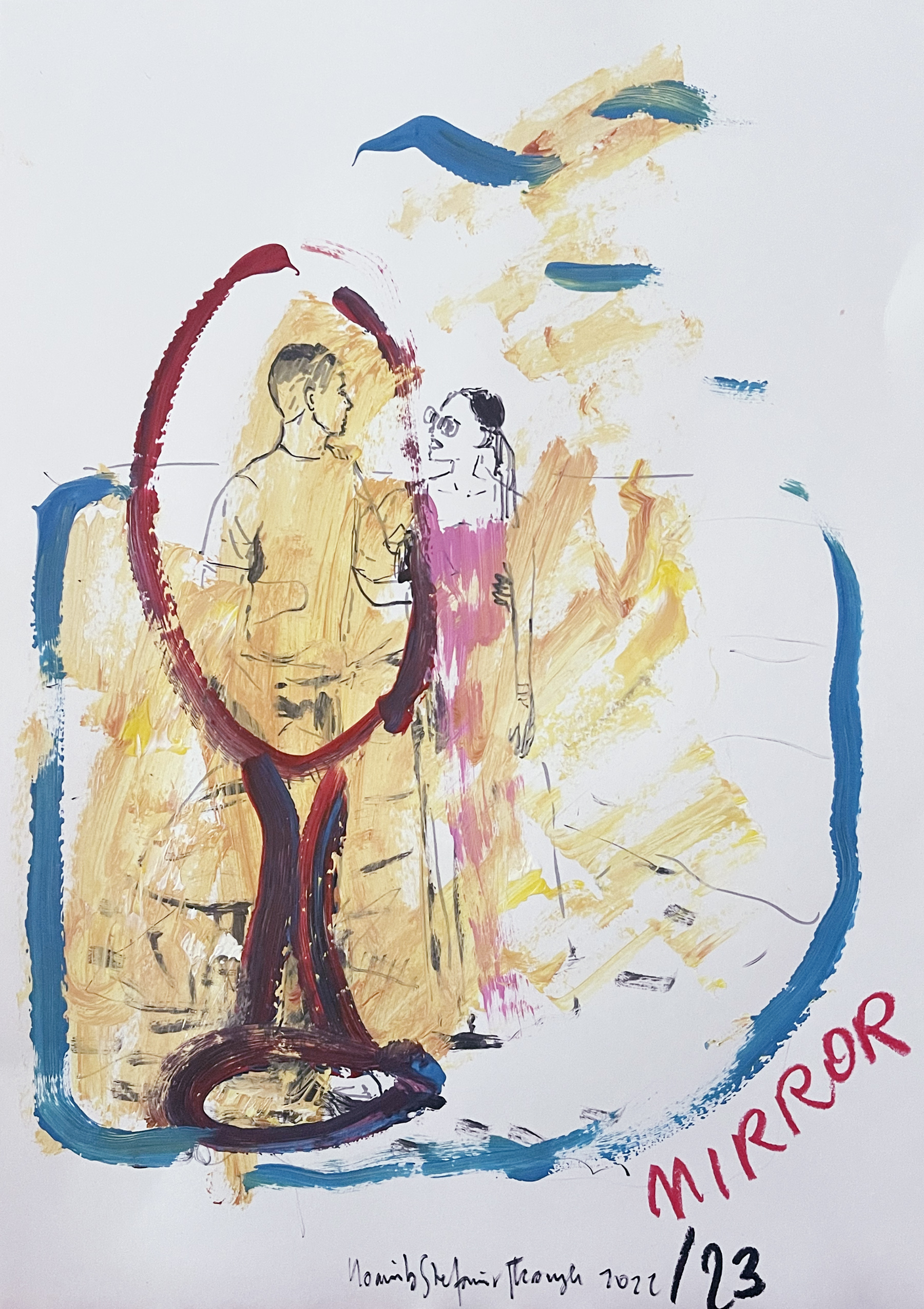 ‚Mirror’, ink & acrylic, 29,5 x 42 cm, Kamila Stefania Tkaczyk 2023.