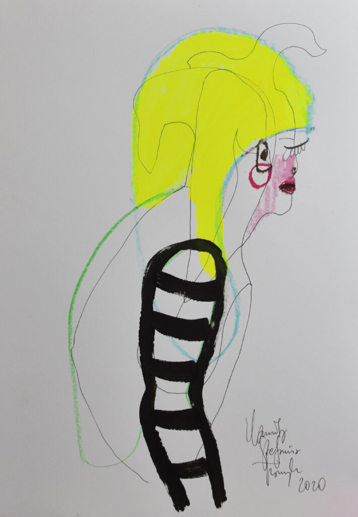 ‚My head’, mix techniques, 40 x 30 cm, Kamila Stefania Tkaczyk 2020.