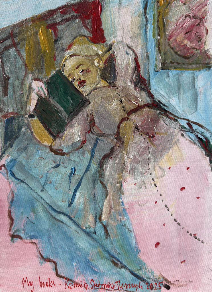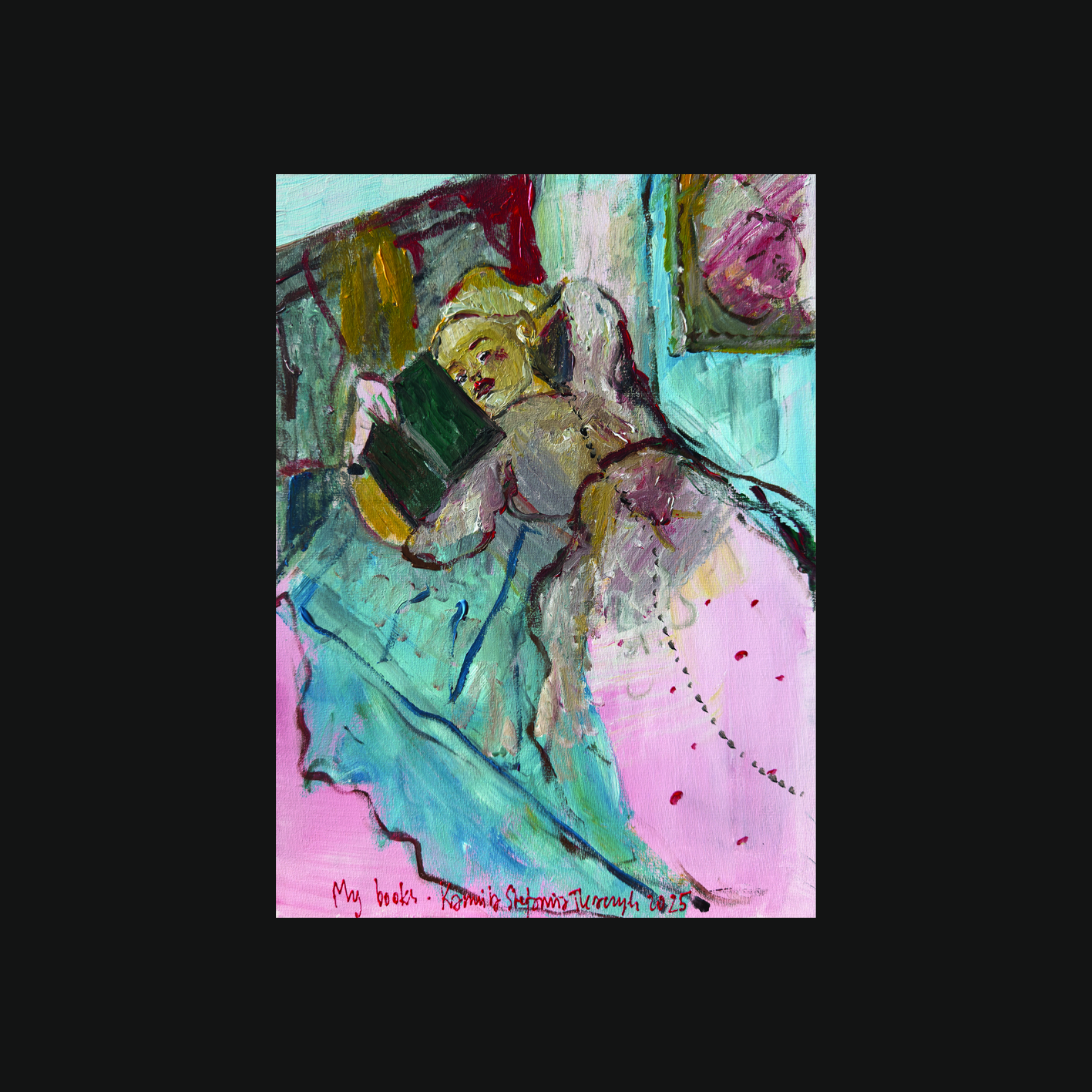 ‚My books’, acrylic, 40 x 30 cm, Kamila Stefania Tkaczyk 2025.