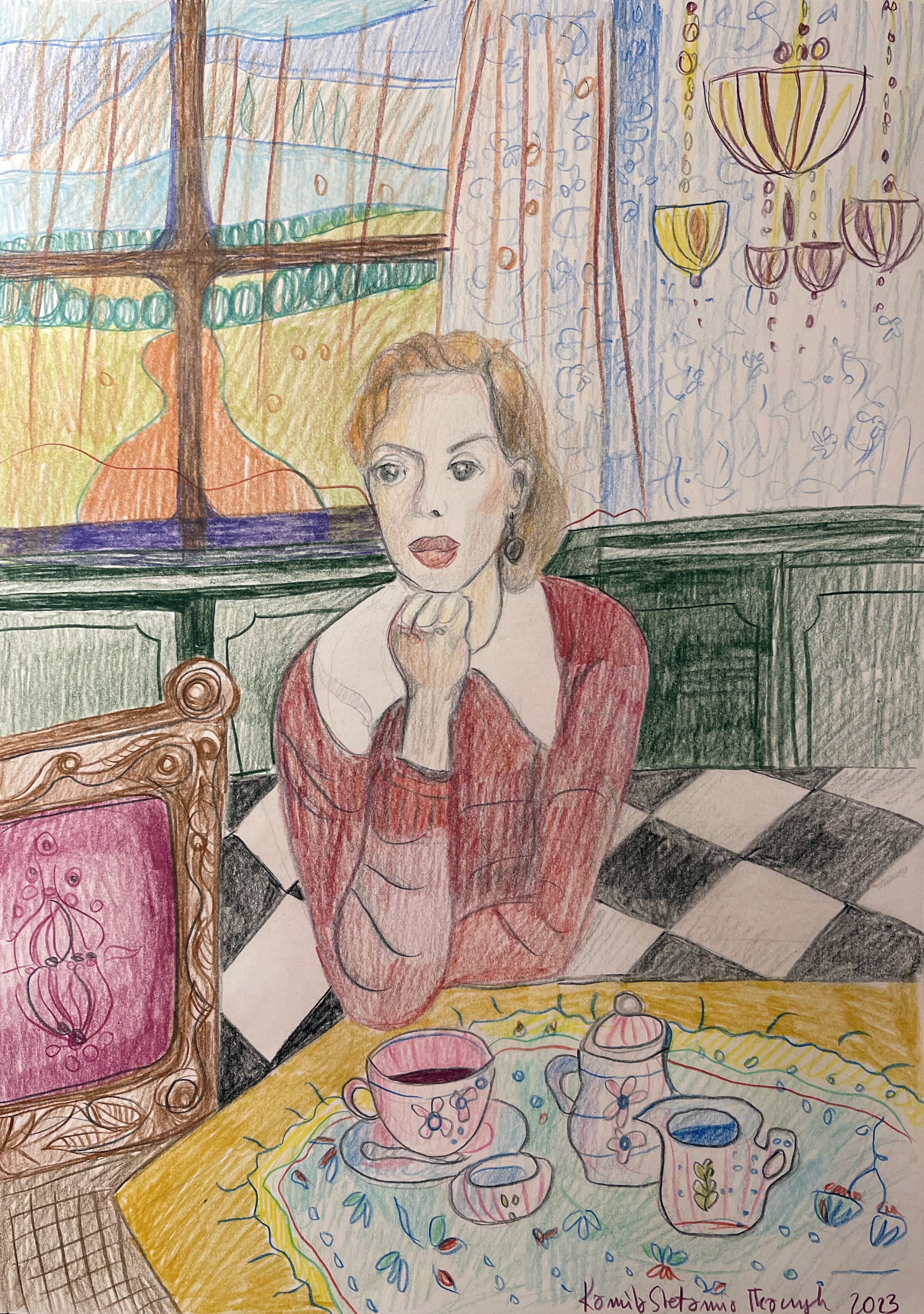 ‚Nice’, crayons, 40 x 30 cm, Kamila Stefania Tkaczyk 2023.
