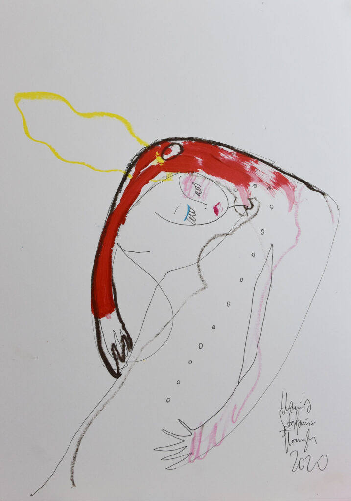 ‚Pajacyka’, ink/acrylic, 40 x 30 cm, Kamila Stefania Tkaczyk 2020