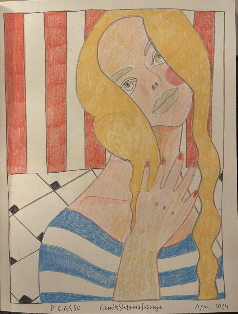 ‚Picasso’, crayons, A3, Kamila Stefania Tkaczyk 2024.