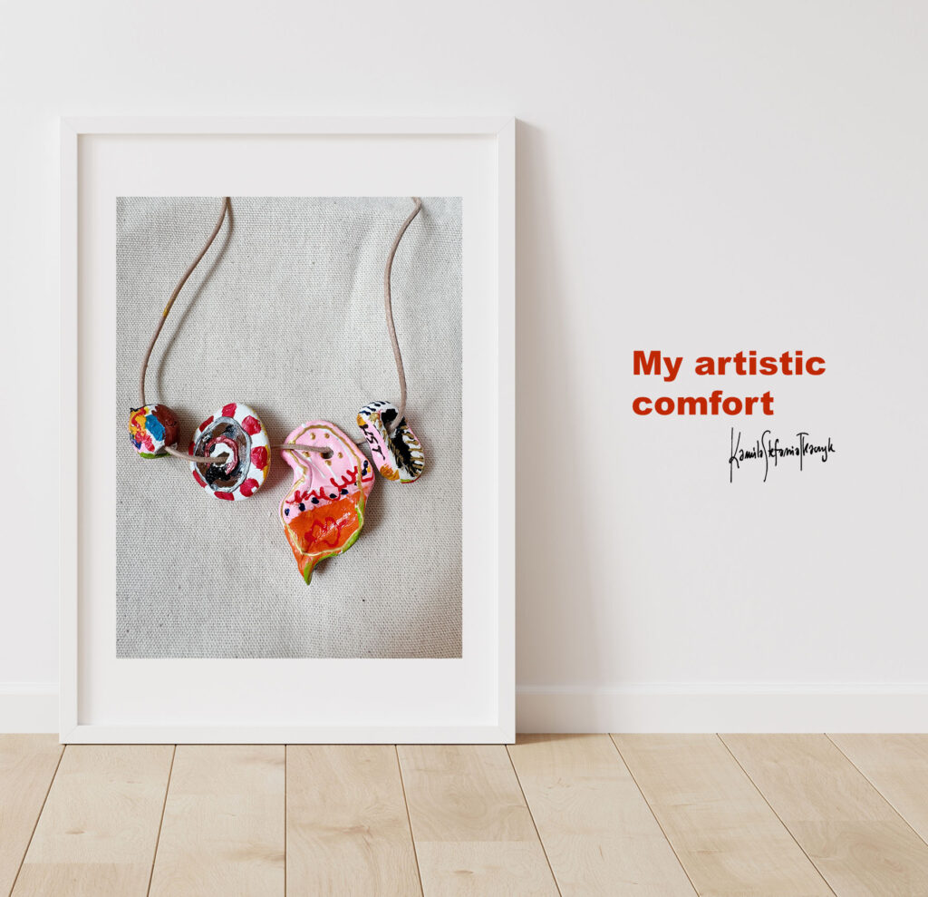 Intricately crafted artistic necklace made of clay. Can be worn in various configurations or individually. All on a leather strap. Art & design by Kamila Stefania Tkaczyk. Sales and contact via: kamila.tkaczyk.art@gmail.com