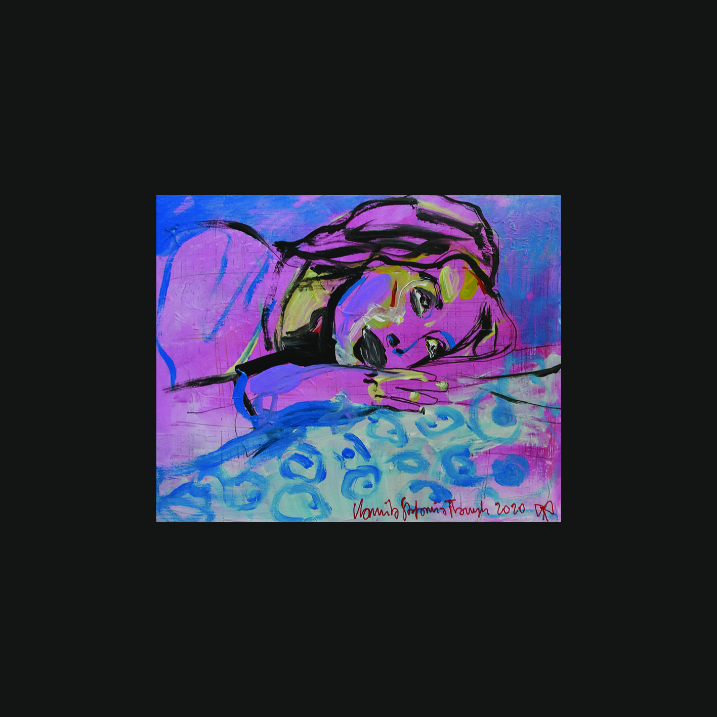 ‚Pink night’, acrylic, 50 x 60 cm, Kamila Stefania Tkaczyk 2020.
