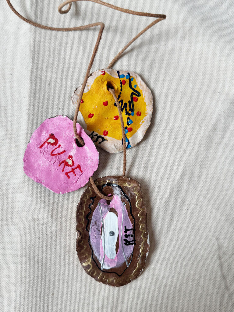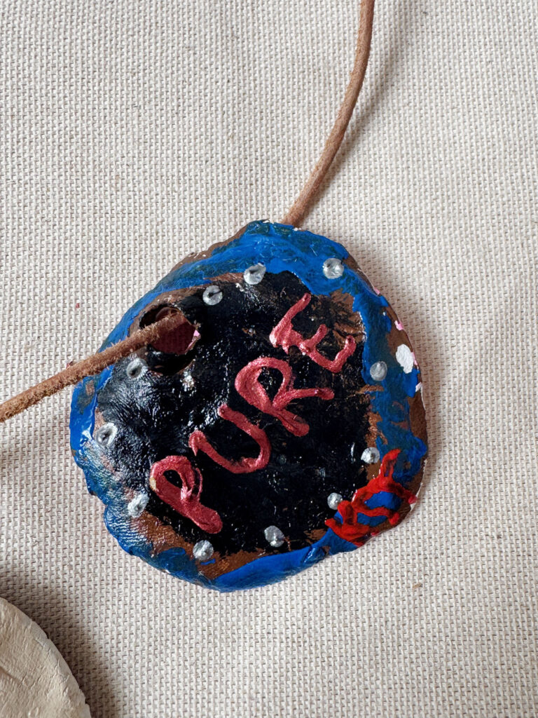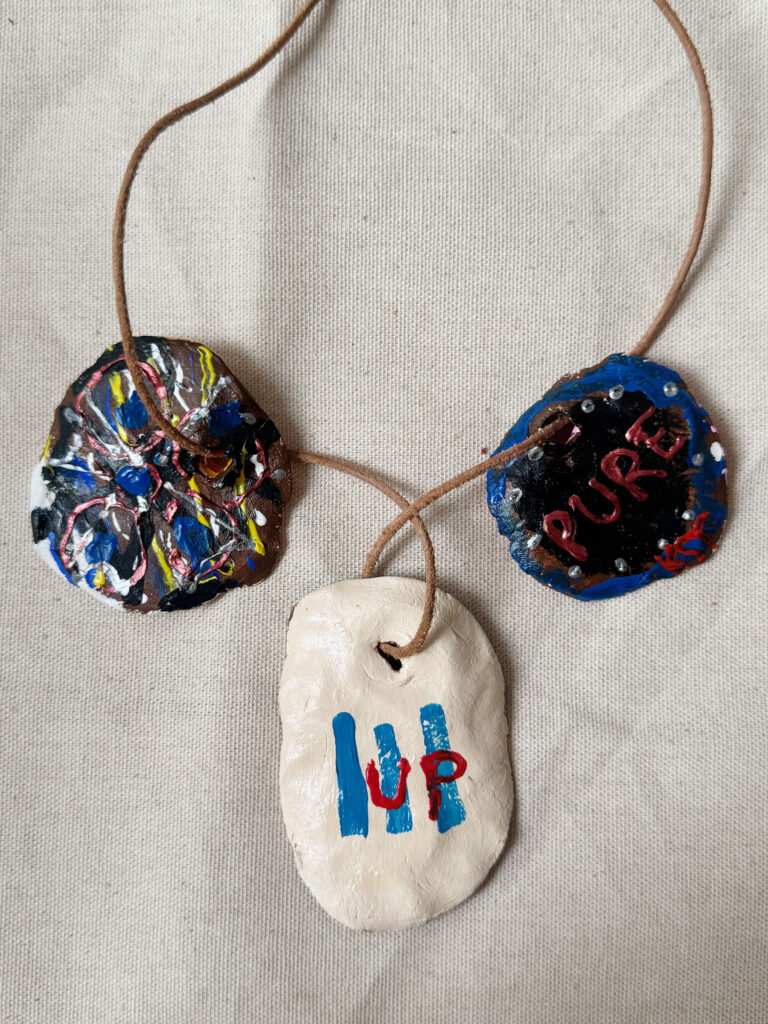 Intricately crafted artistic necklace made of clay. Can be worn in various configurations or individually. All on a leather strap. Art & design by Kamila Stefania Tkaczyk. Sales and contact via: kamila.tkaczyk.art@gmail.com