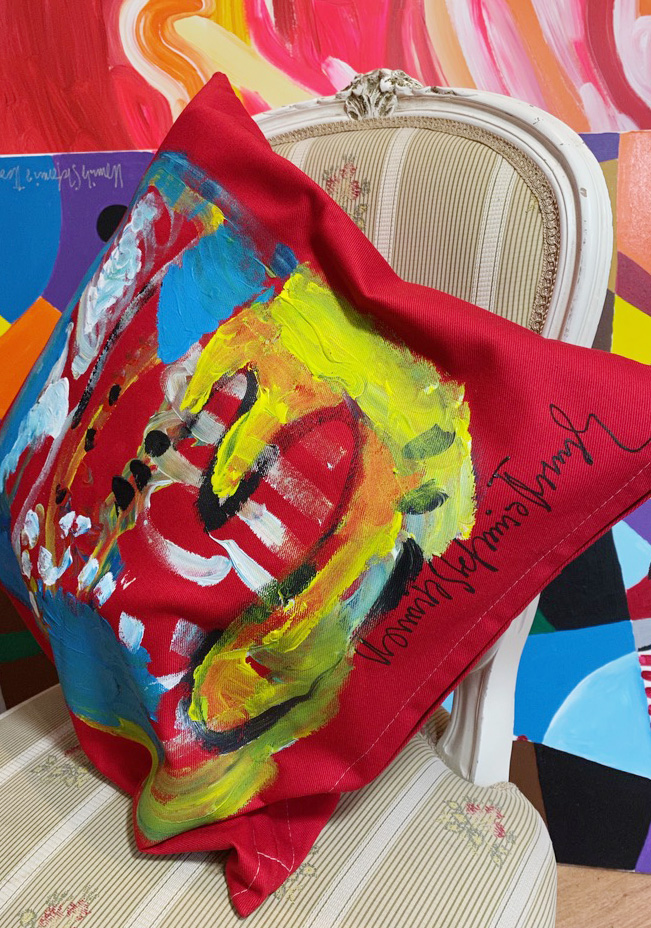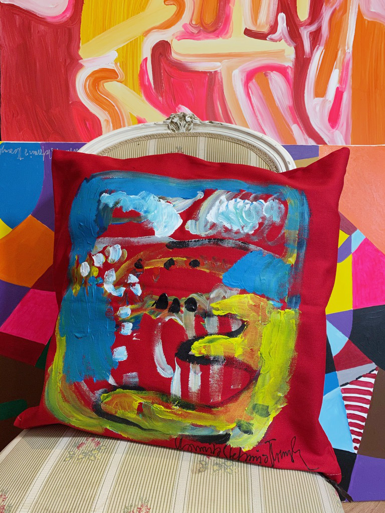 Artystyczna poszewka by Kamila Stefania Tkaczyk. Bawełna, akryl, 50 x 50 cm.