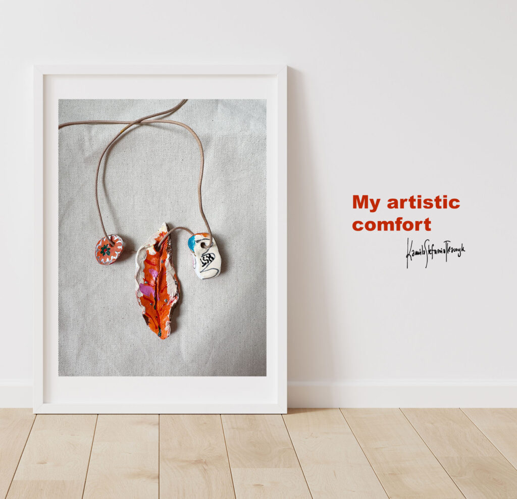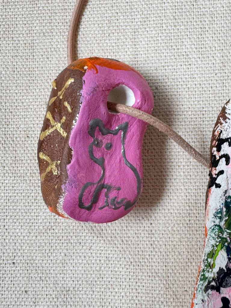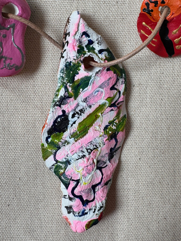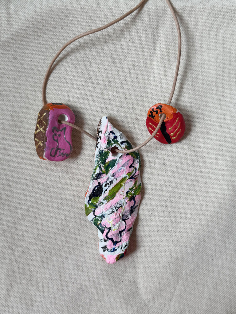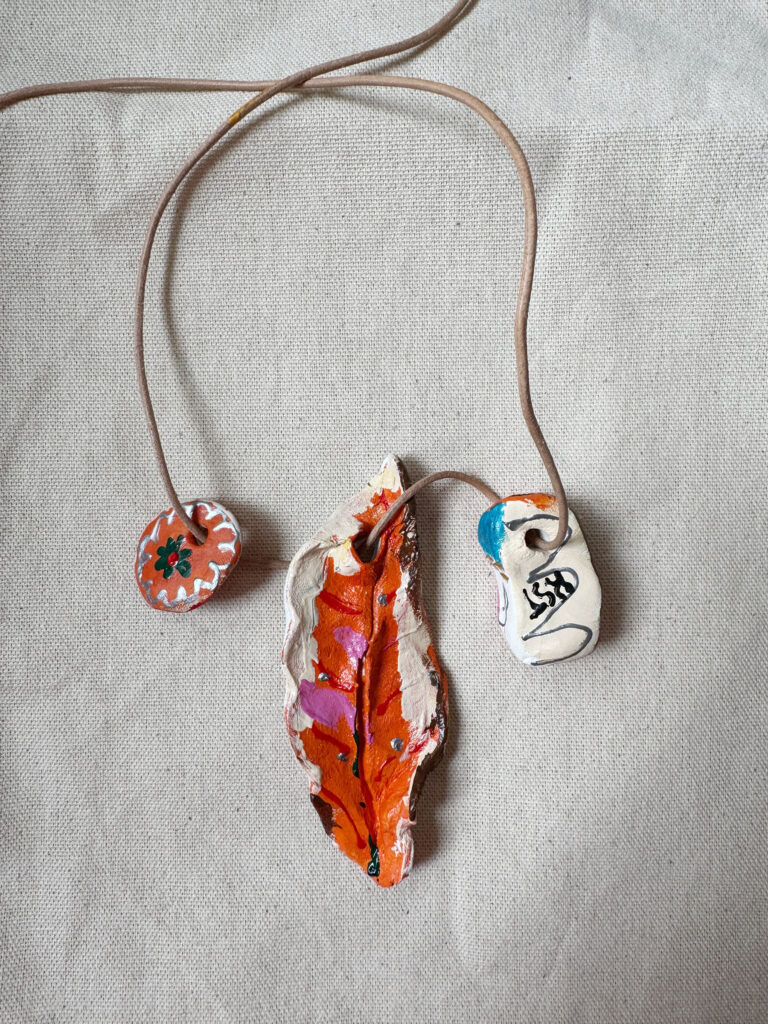 Intricately crafted artistic necklace made of clay. Can be worn in various configurations or individually. All on a leather strap. Art & design by Kamila Stefania Tkaczyk. Sales and contact via: kamila.tkaczyk.art@gmail.com