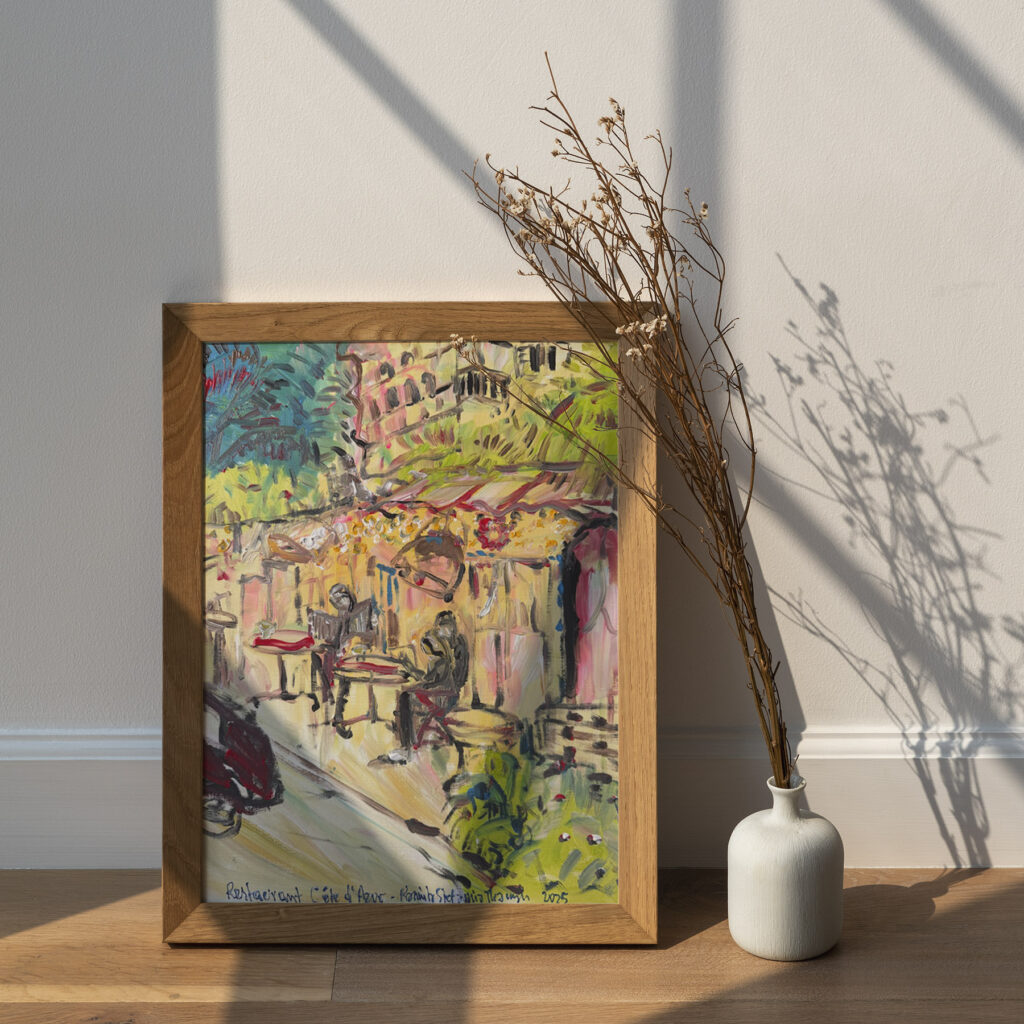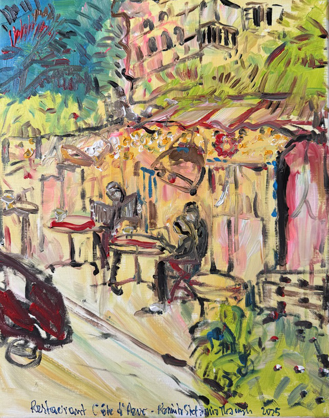 ‚Restaurant Côte d’Azur’, acrylic, 50 x 40 cm, Kamila Stefania Tkaczyk 2025.