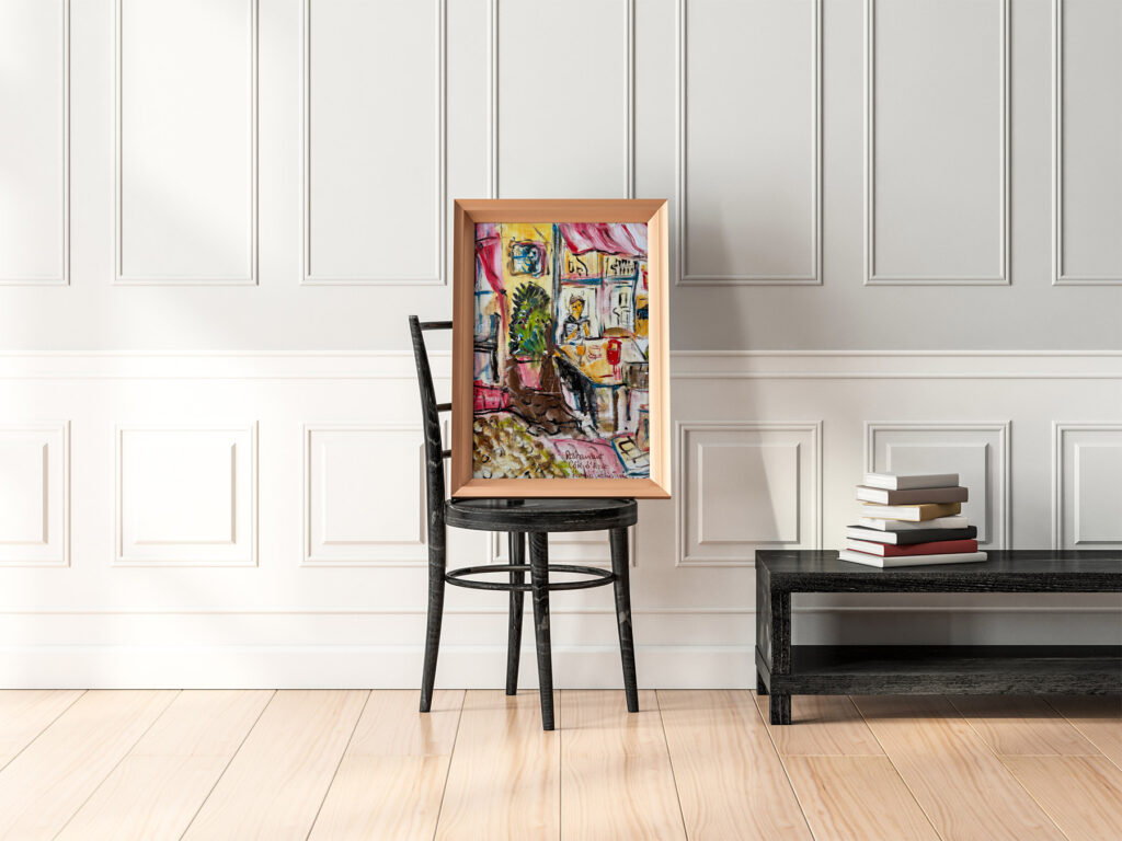‚Restaurant Côte d’Azur’, acrylic, 50 x 40 cm, Kamila Stefania Tkaczyk 2025.