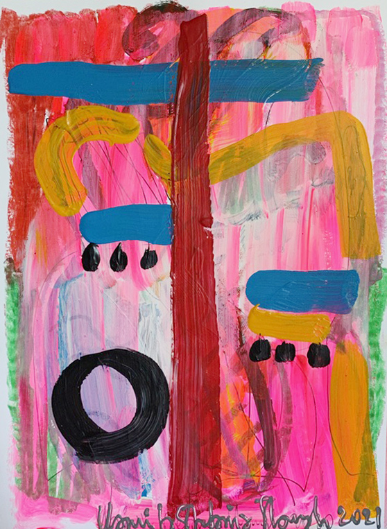 ‚Pink portrait’, acrylic, oil pastel, 40 x 30 cm, Kamila Stefania Tkaczyk 2021.