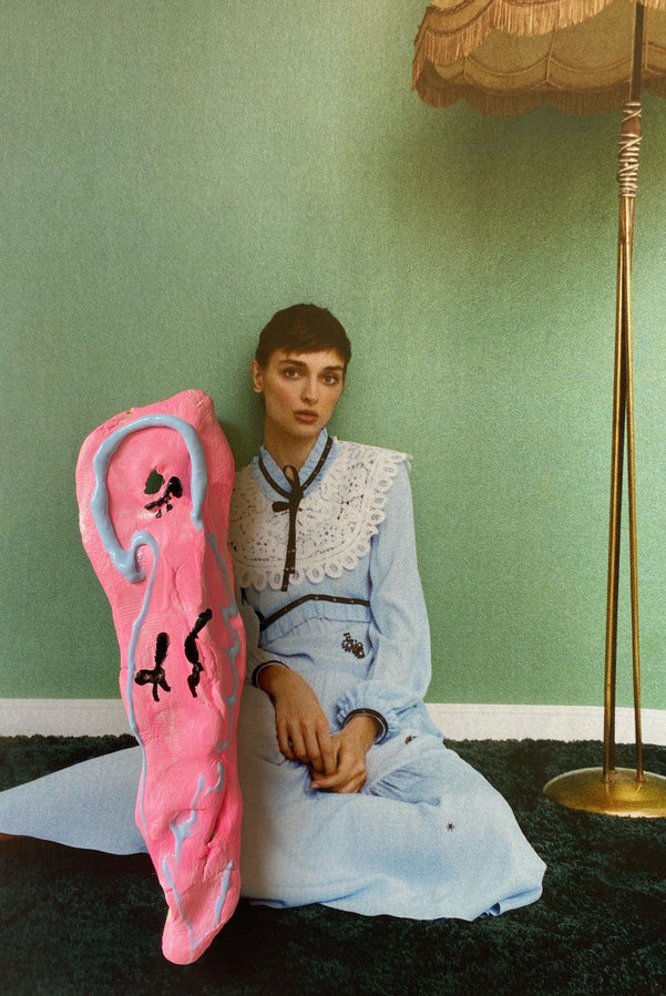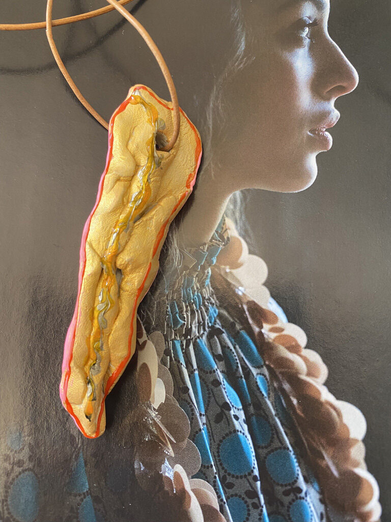 Naszyjnik na rzemieniu by Kamila Stefania Tkaczyk, glina, akryl. Unikat.