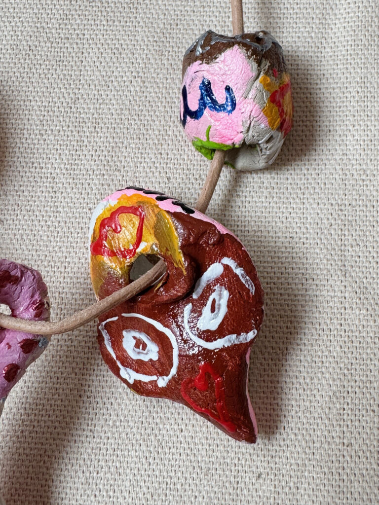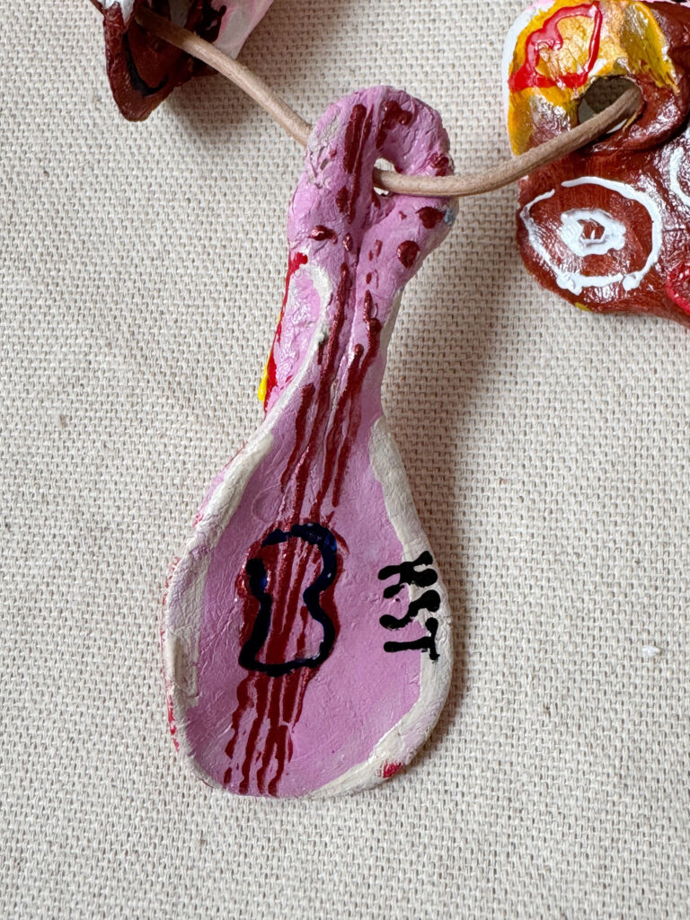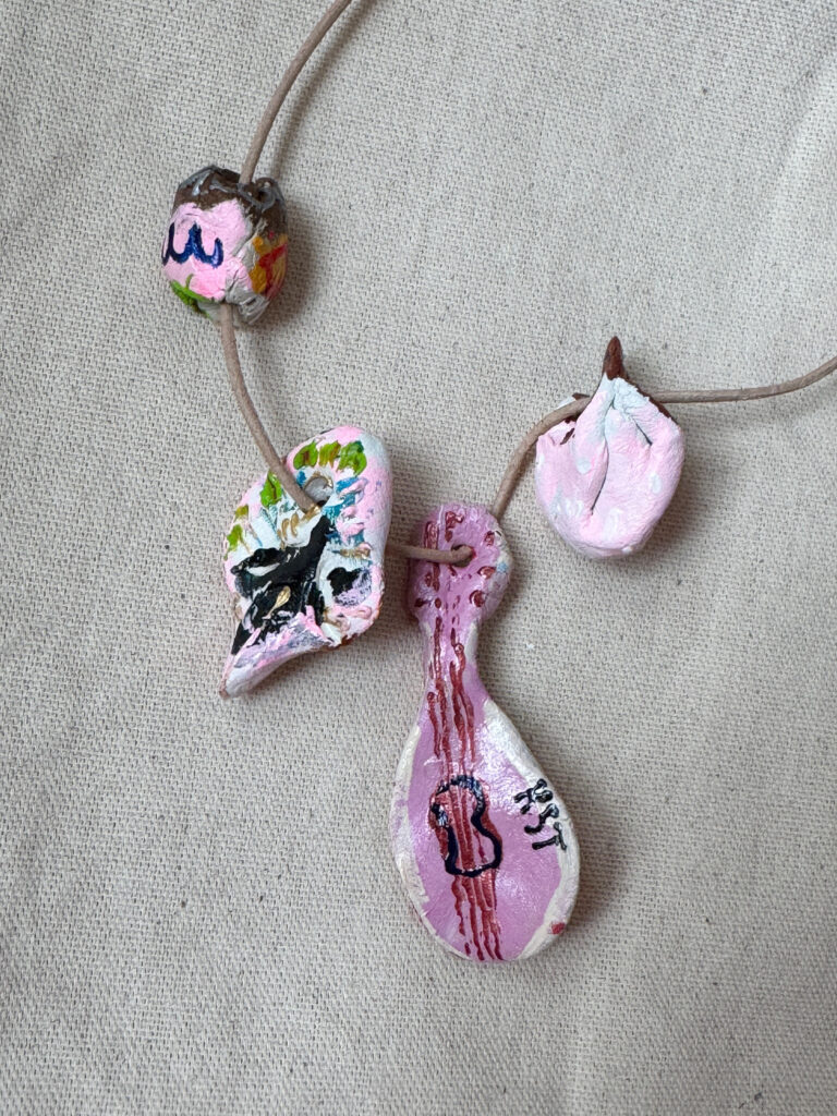 Intricately crafted artistic necklace made of clay. Can be worn in various configurations or individually. All on a leather strap. Art & design by Kamila Stefania Tkaczyk. Sales and contact via: kamila.tkaczyk.art@gmail.com