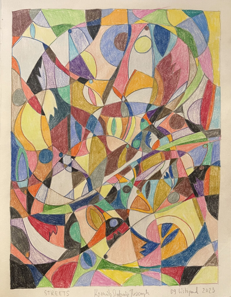 ‚Streets’, polychromos chrayon, 27,5 x 36,5 cm, Kamila Stefania Tkaczyk 2023.