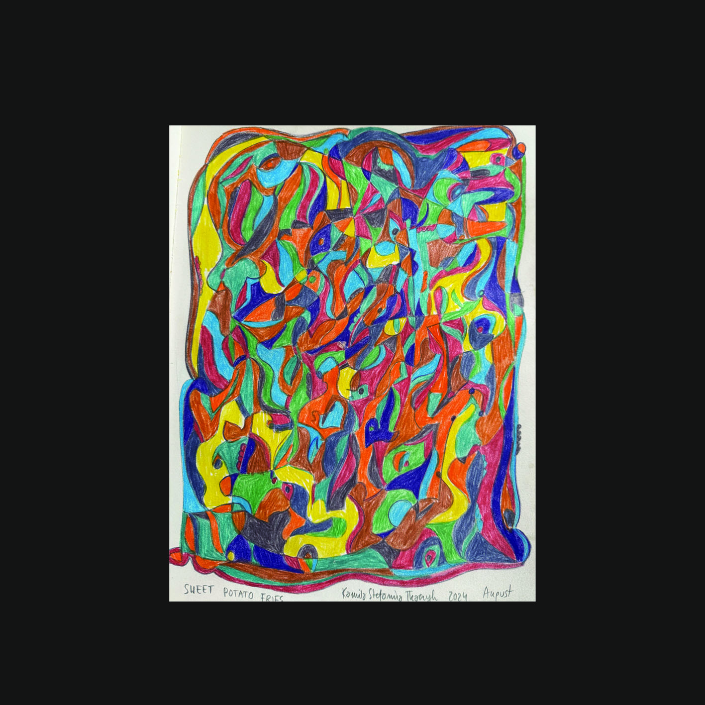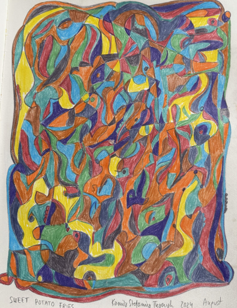 ‚Sweet potato’, crayons, 27,5 x 26,5 cm, Kamila Stefania Tkaczyk 2024.