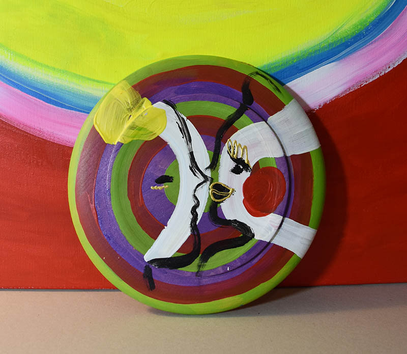 Malarstwo talerzowe autorstwa Kamili Stefanii Tkaczyk. Średnica 22 cm, drewno, akryl.