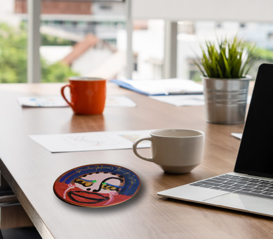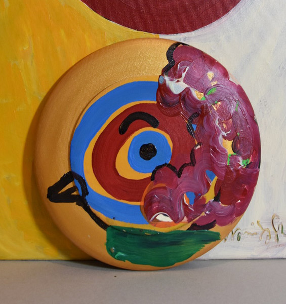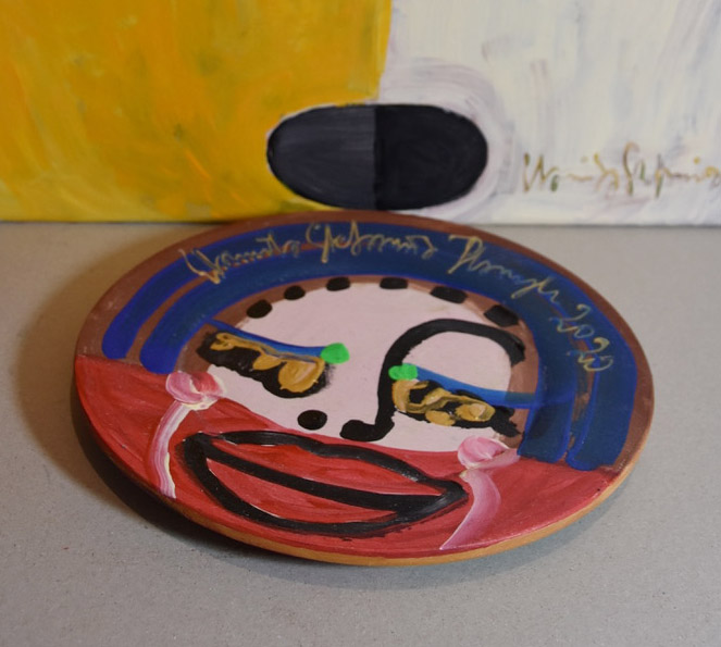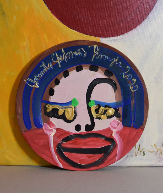 Malarstwo talerzowe autorstwa Kamili Stefanii Tkaczyk. Średnica 22 cm, drewno, akryl.