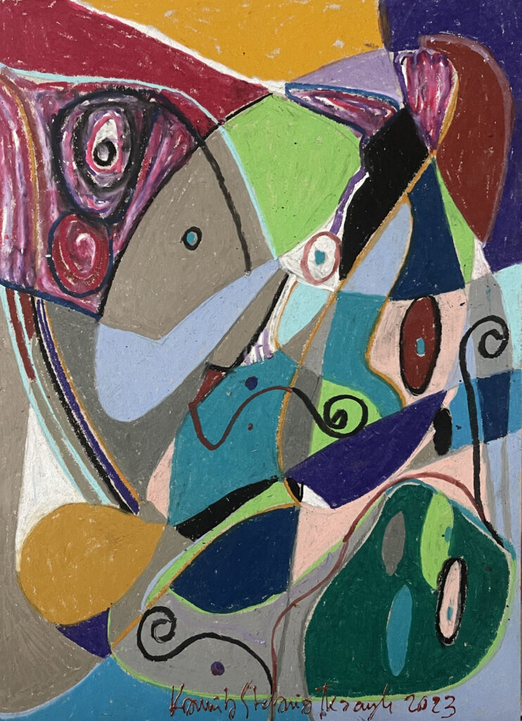 ‚Talk’, oil pastel, 50 x 35 cm, Kamila Stefania Tkaczyk 2023.