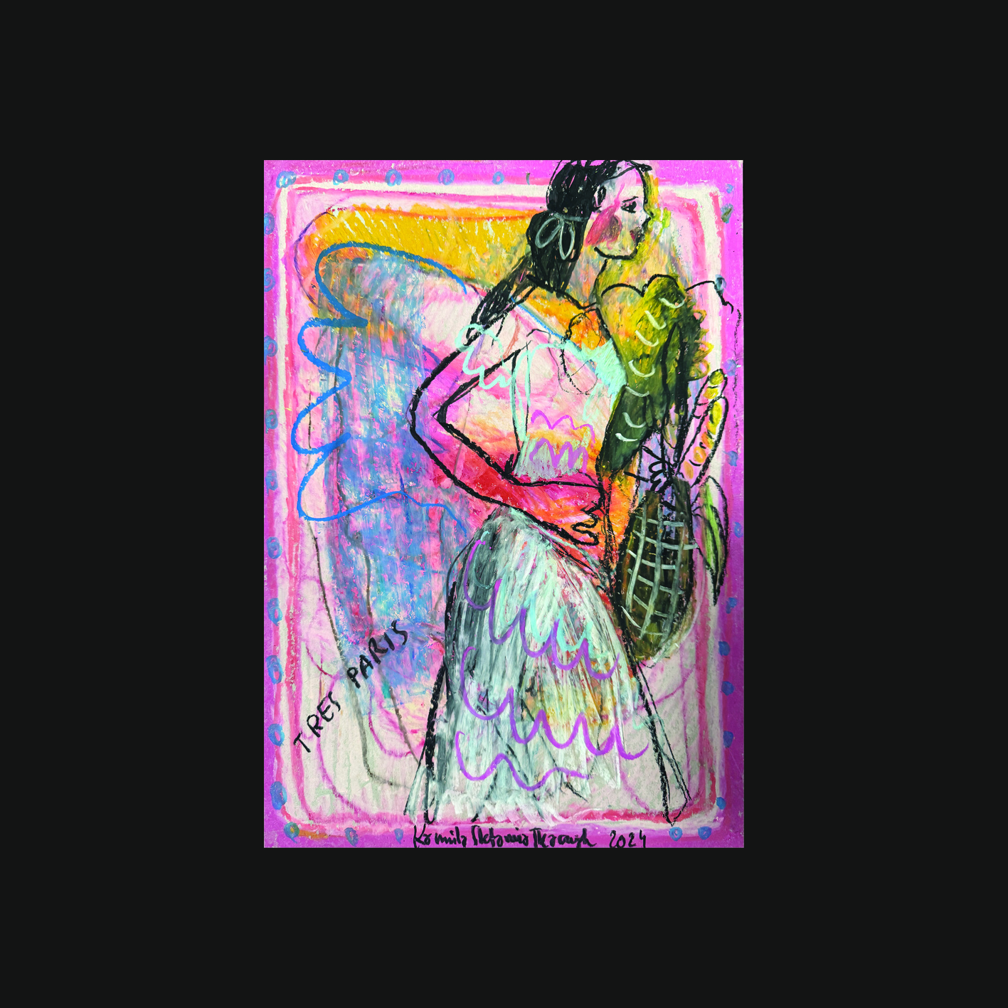 ‚Tres Paris’, oil pastel, 50 x 35 cm, Kamila Stefania Tkaczyk 2024.