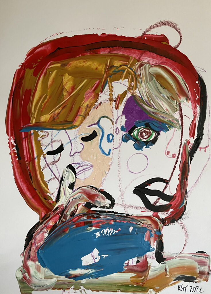 ‚Twins’, acrylic & oil pastel, 30 x 40 cm, Kamila Stefania Tkaczyk 2022.