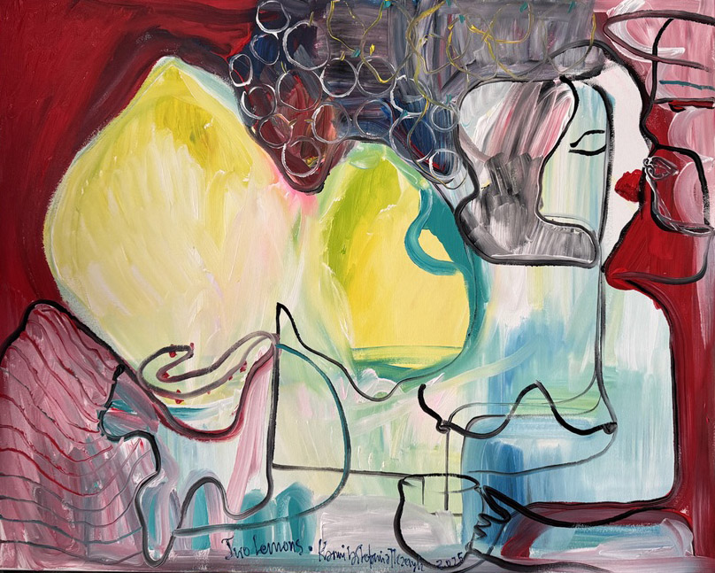 ‚Two lemons’, acrylic, 100 x 80 cm, Kamila Stefania Tkaczyk 2025.